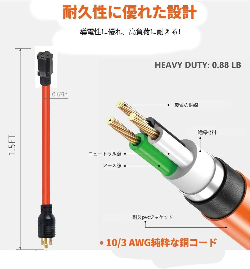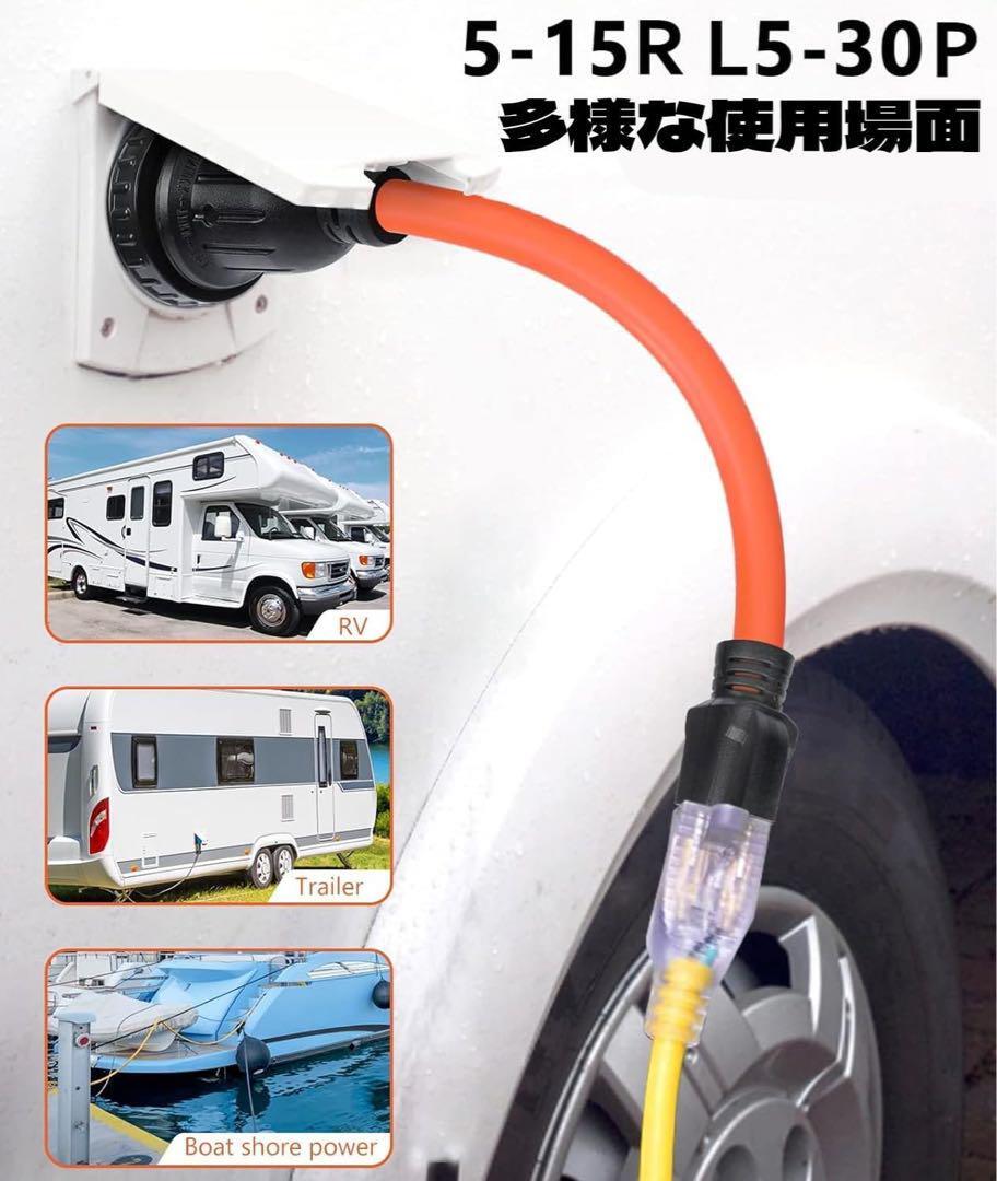 【多目的使用可能】本商品は丸のこ、ヒーター、テーブルソーなど、耐久性が求められる産業用途に最適です。ほとんどの家庭用工具や電化製品に幅広くご使用いただけます。また、30AのRVアダプタコードはRVキャンパーにも最適、現場やキャンプサイトでの一時的な電力供給に役に立ちます。