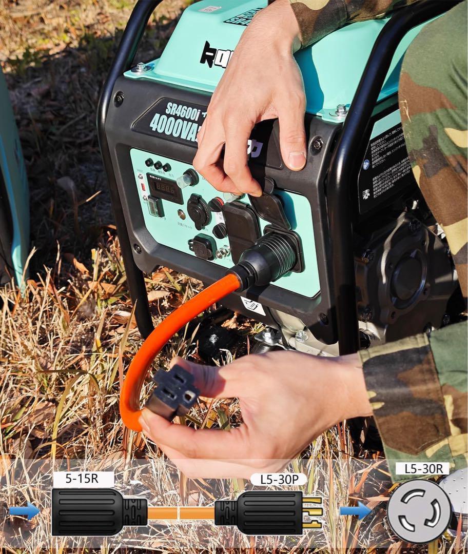 発電機コード アダプタ 発電機延長コード RV電源コードツイストロック L5-30P~5-15R