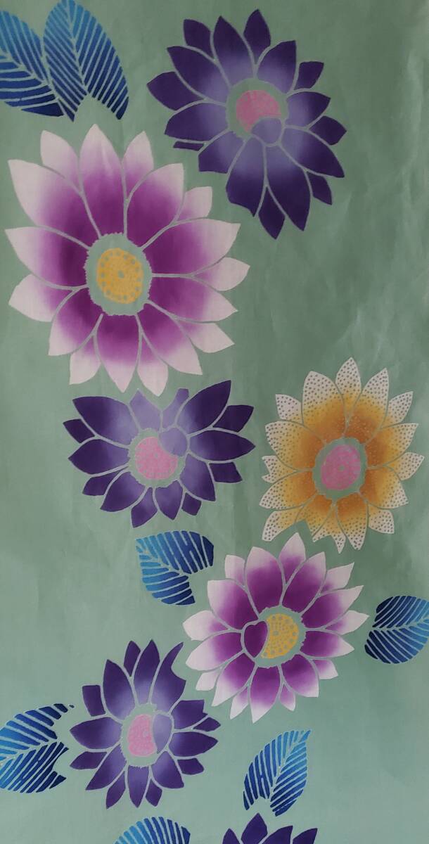 スプレイグリーンの地にカラフルなお花模様