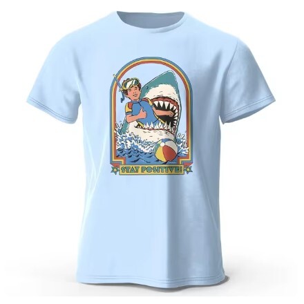 クラシックなヴィンテージ面白いサメTシャツ,肯定的なプリントの服,綿100%,スポーティなトップス サイズ:XL 色: ライトブルー