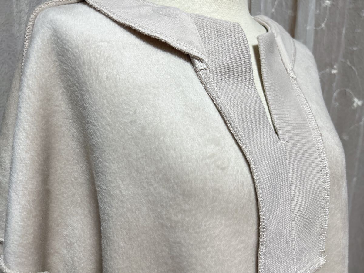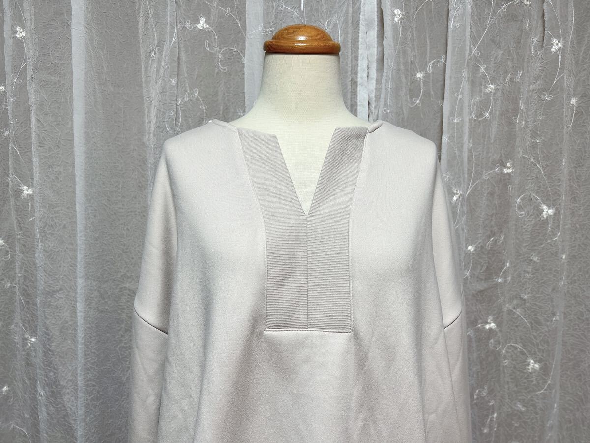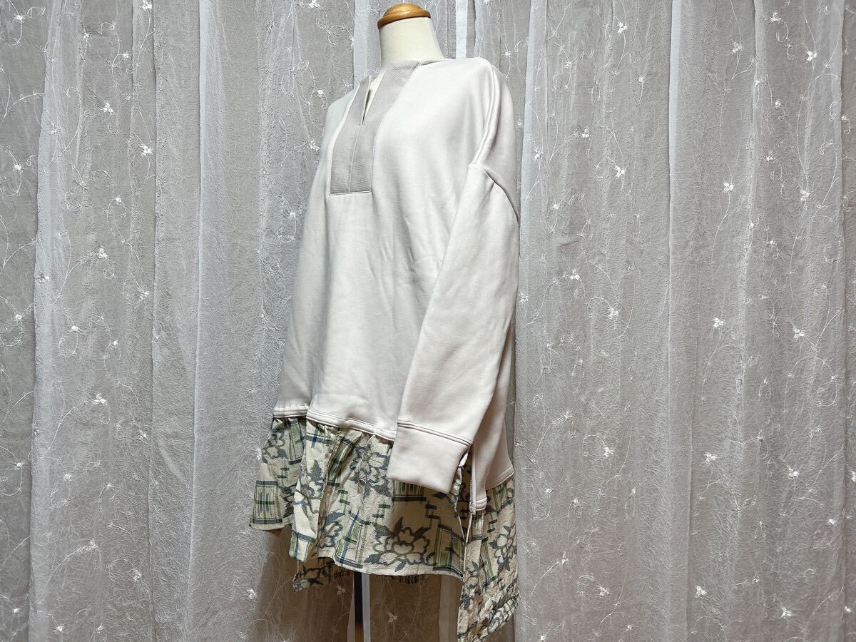 麻混合のベージュ絣の着物を付けてシャツワンピース風に仕上げました。