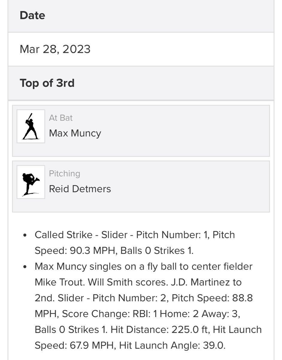 大谷翔平のチームメイト マックスマンシー ヒット ボール