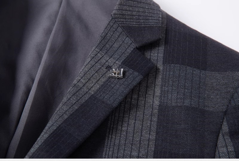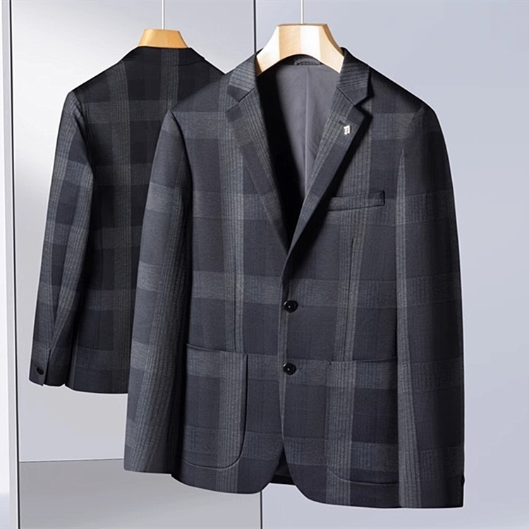 P0575-2XL 新品 高品質 ウール混 テーラードジャケット メンズ 格子柄 スーツジャケット 紳士 厚手 秋冬 カジュアル ブレザー/グレー
