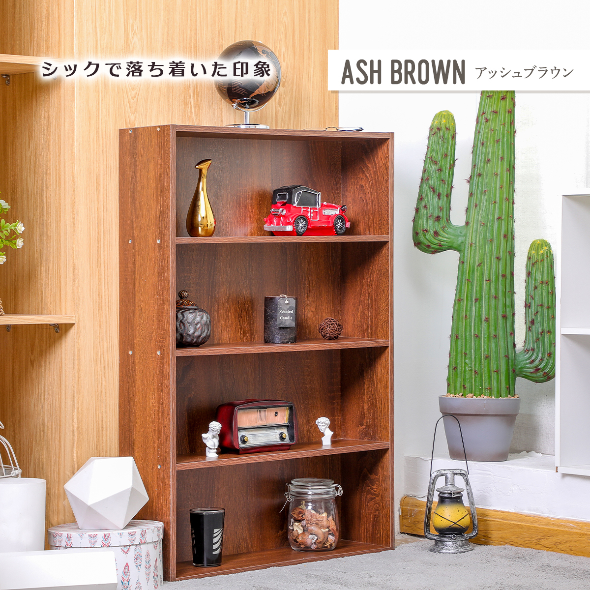 薄型カラーボックス 4段 幅広 幅60cm 2個セット(アッシュブラウン)木目調 本棚 オープンラック 子供部屋 家具 大4 ashブラウン 2