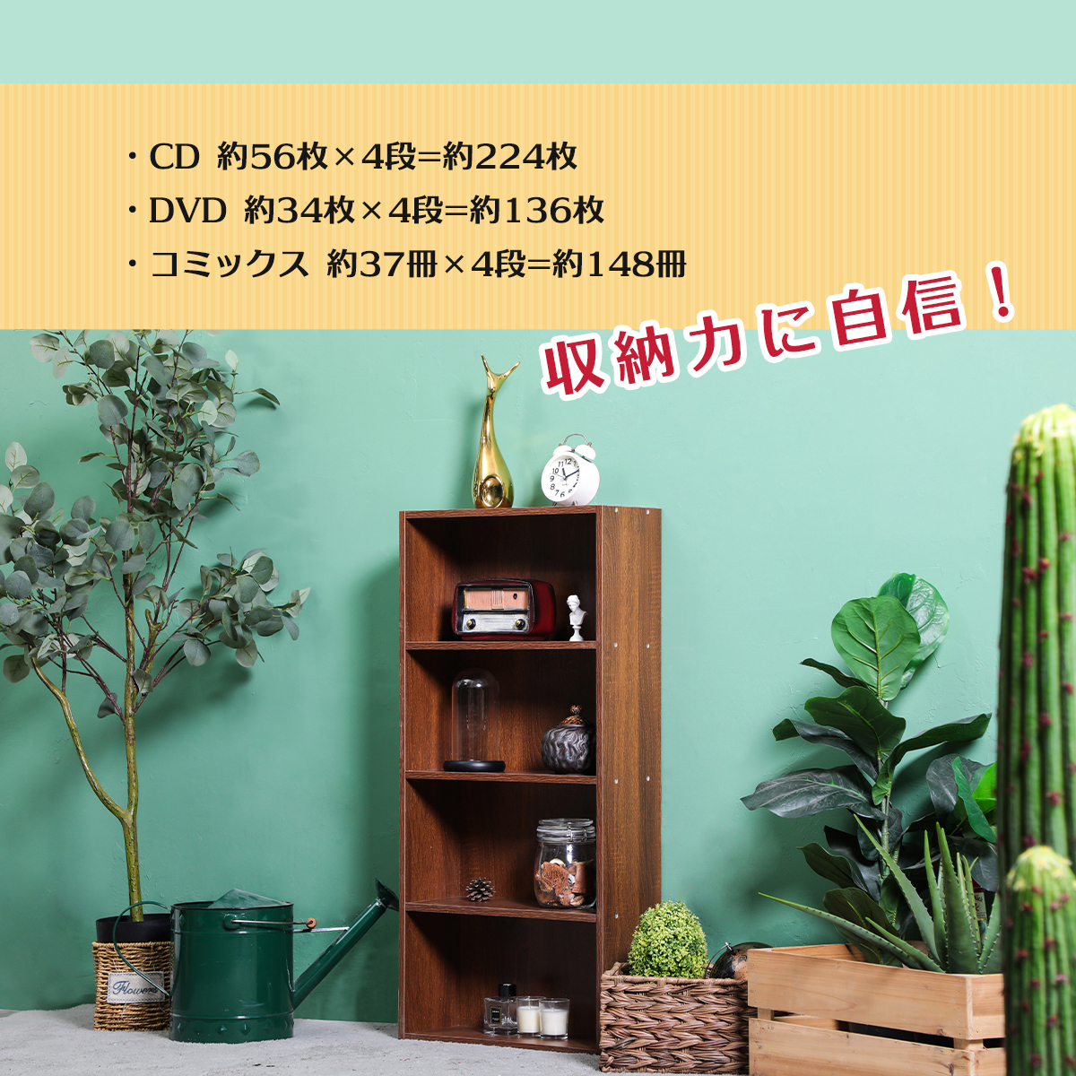 圧迫感のない薄型大容量タイプの4段カラーボックスです。