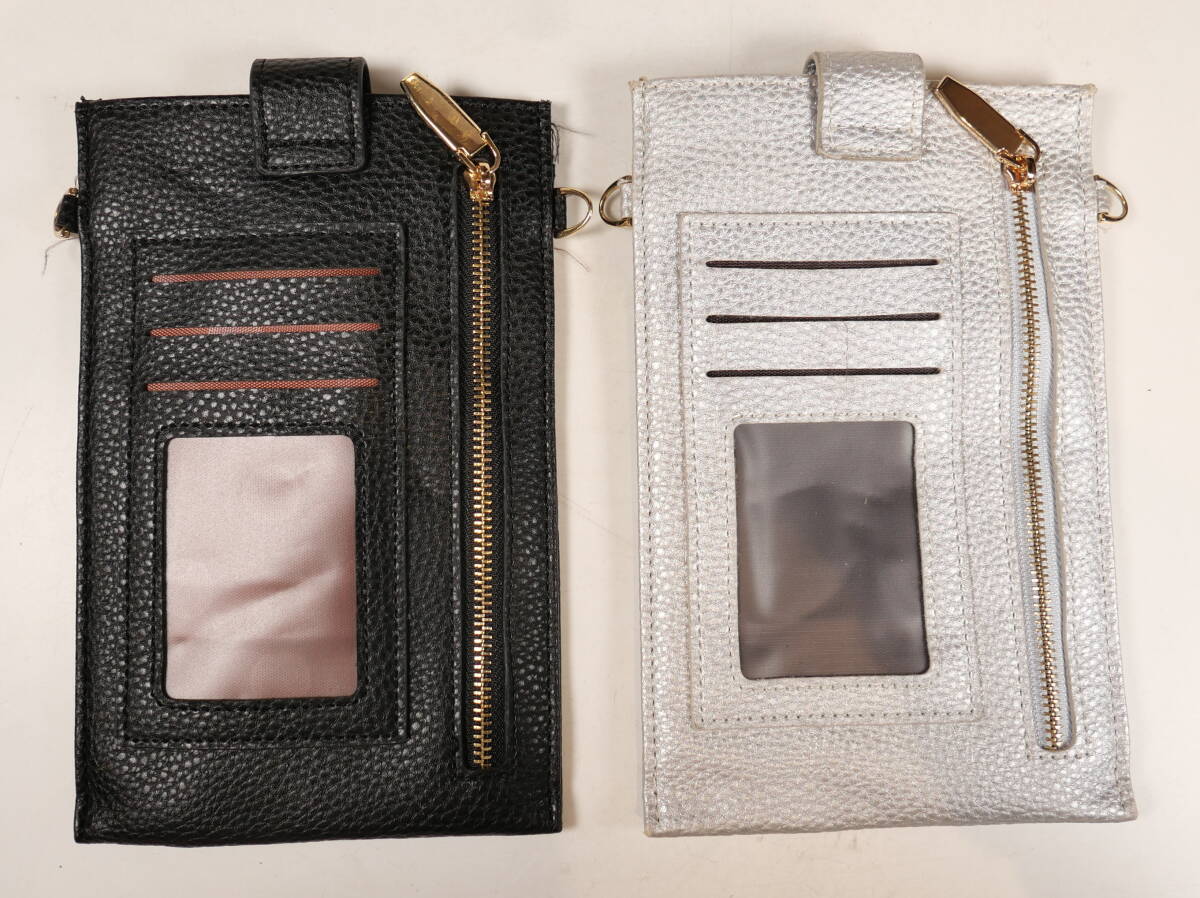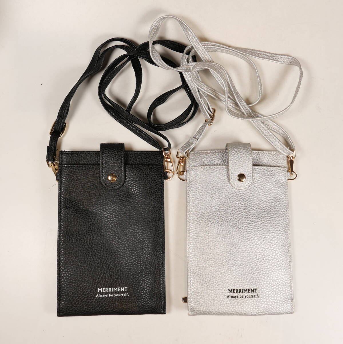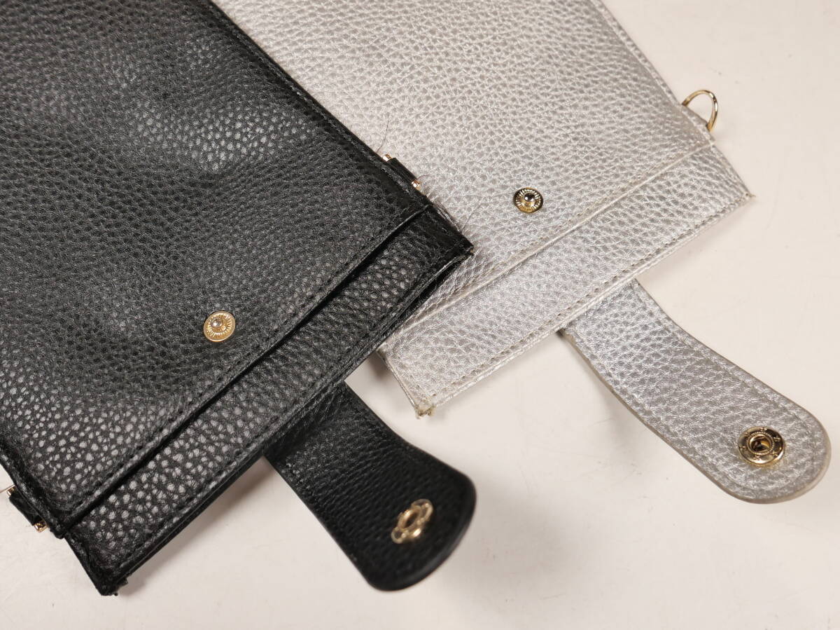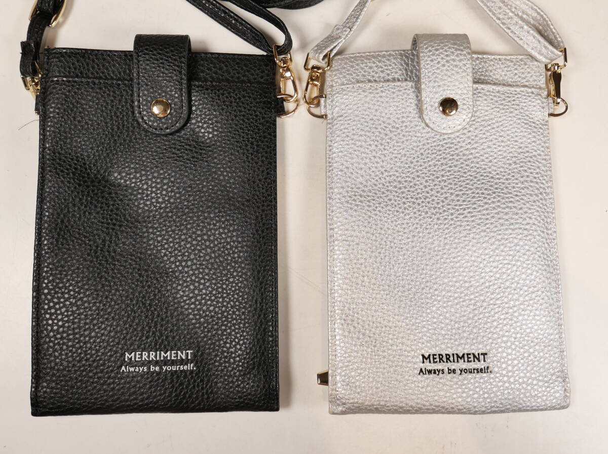 | ♪中古★MERRIMENT メリーメント レザー ショルダー スマホ トラベルポーチ 19×12cm シルバー/ブラック 2色セット | ||