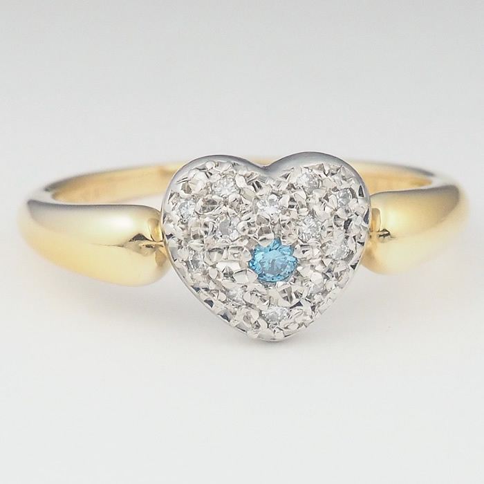 詳細:ノーブランド ダイヤモンド/0.10ct K18YG/Pt900 ハート デザイン リング 12号 仕上済