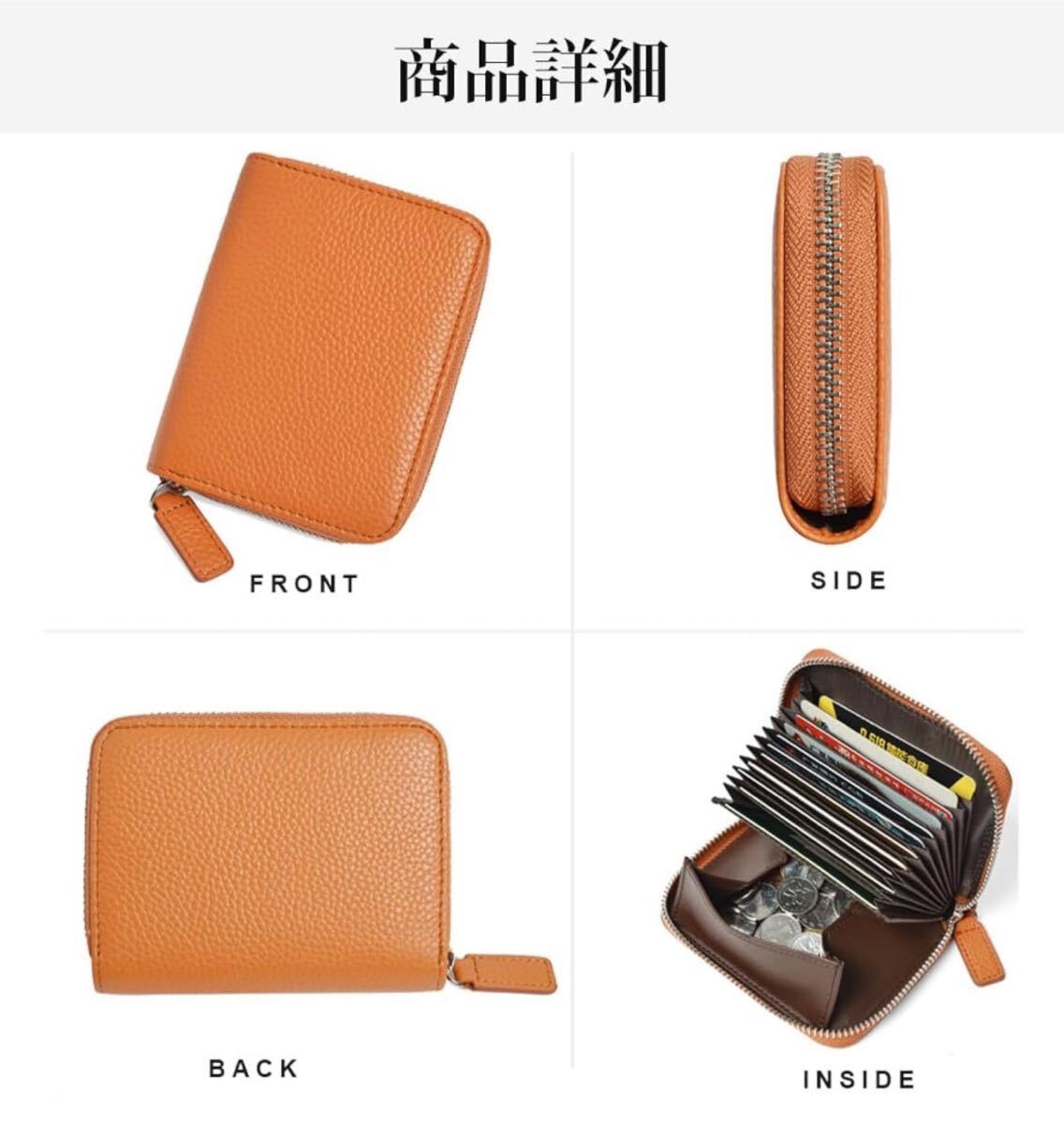【スキミング防止機能】外側の革と芯地の間に、防磁素材が内蔵しており、スキミング防止機能付き、大切なカードの情報を外部からしっかり守ります。