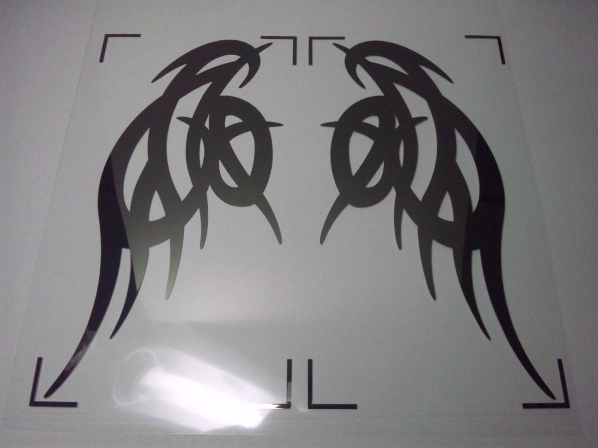 カッティングタイプの鏡面トライバルステッカーです。風雨はもちろん紫外線・海水にも強いステッカーで、屋外で5年の耐久性があります。(http://www.be-sticker.com/では他のステッカーもご覧いただけます)