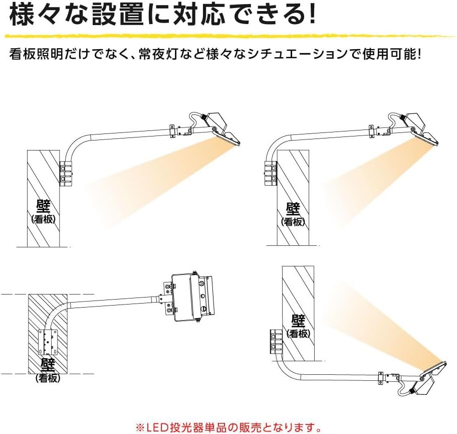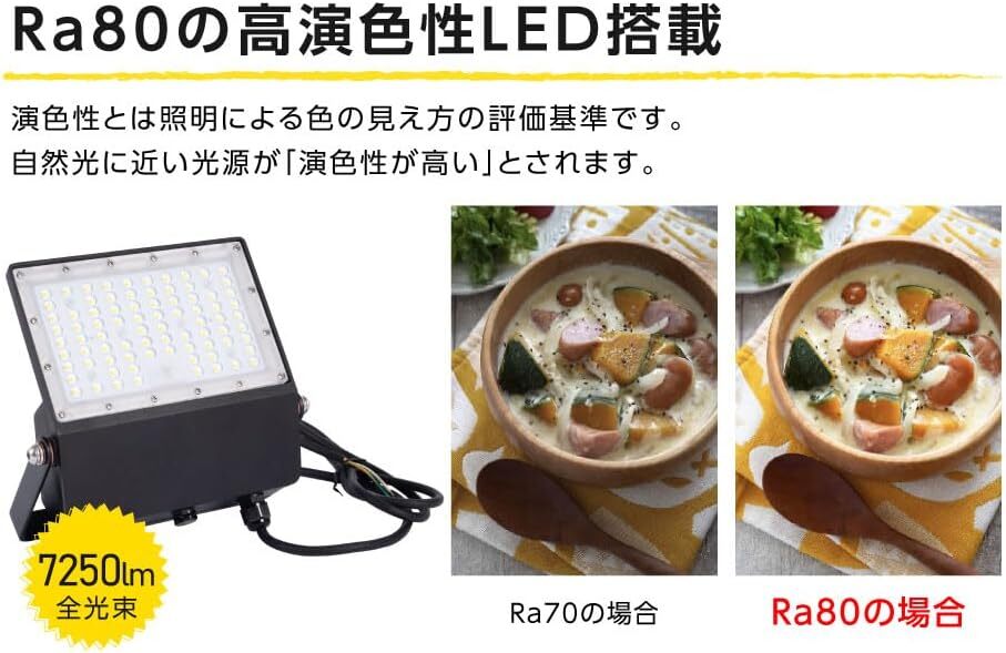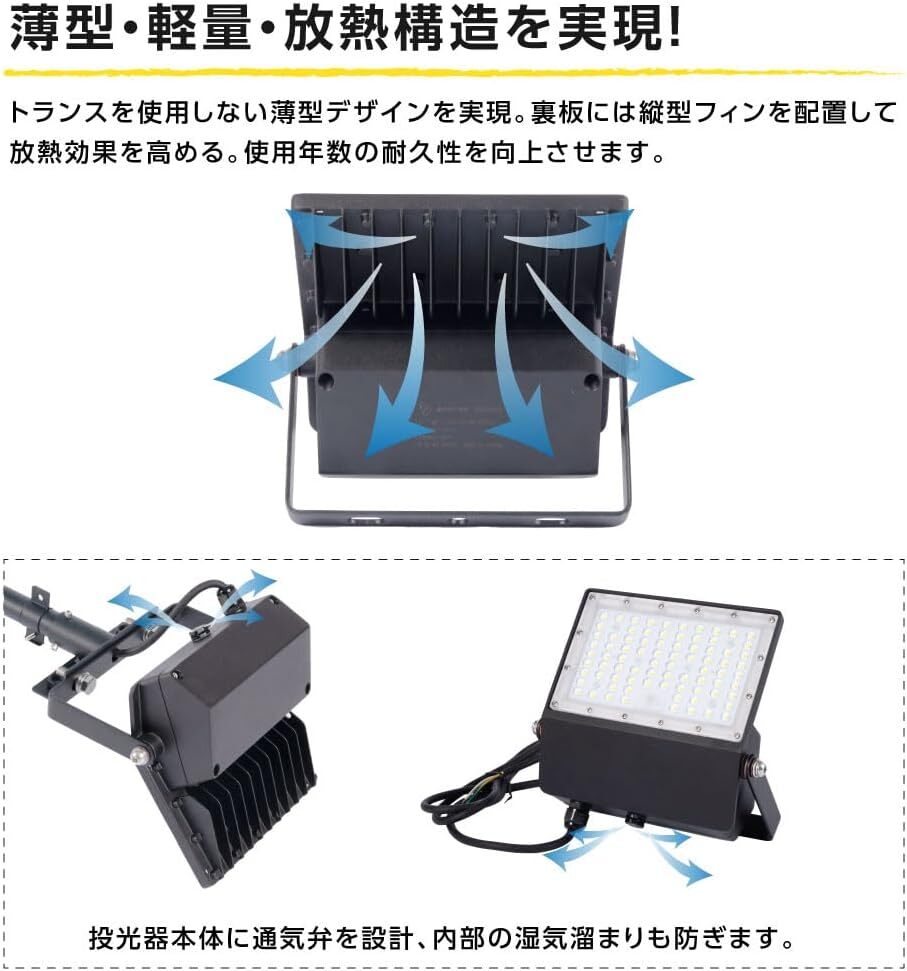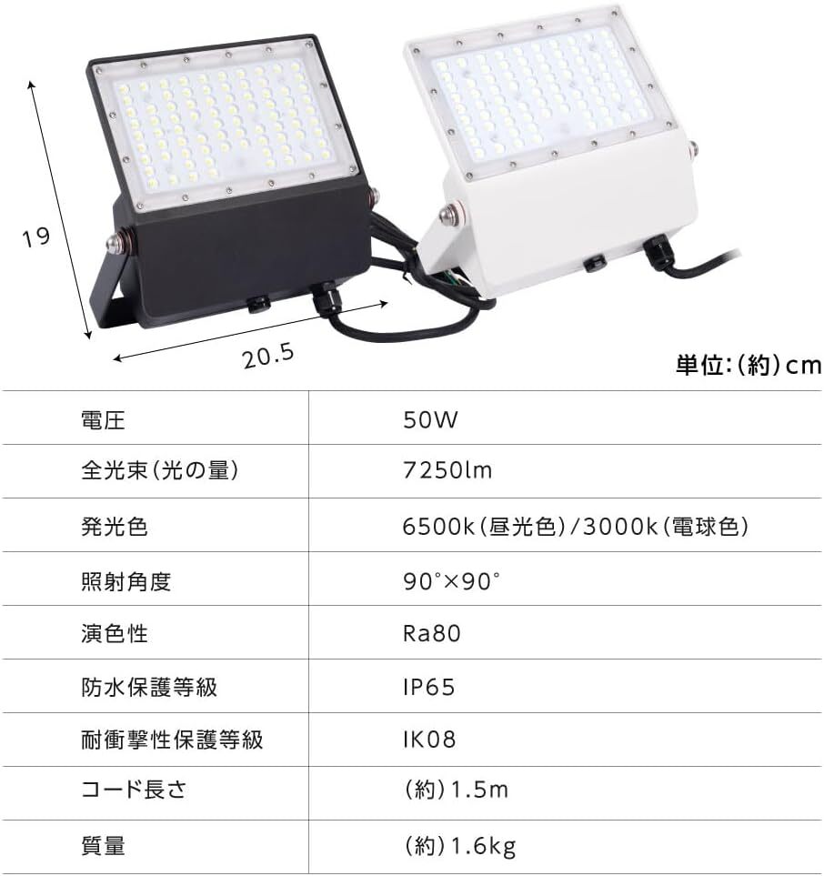 LED投光器 LEDライト 50W 7250lm 屋外 IP65 90° アームライト イベント 演出照明 看板灯 集魚灯 看板照明 倉庫照明 stled-1-50-wh-6500k