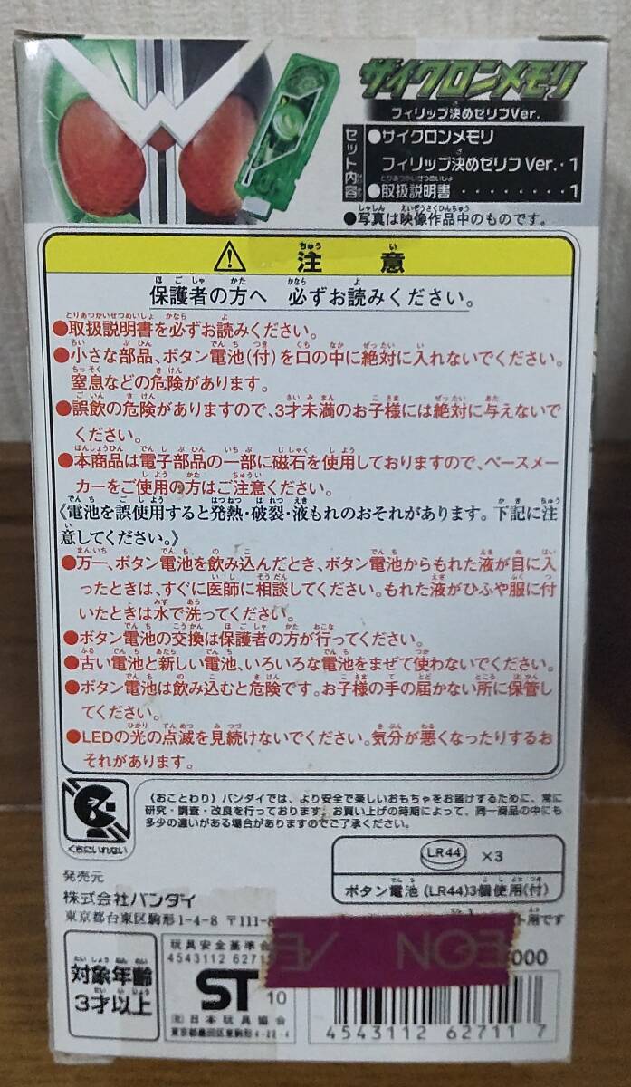 【未使用に近い・音声OK】仮面ライダーW ガイアメモリ イオン限定 サイクロンメモリ フィリップ 決めゼリフ Ver. / W ダブル 箱 説明書 有