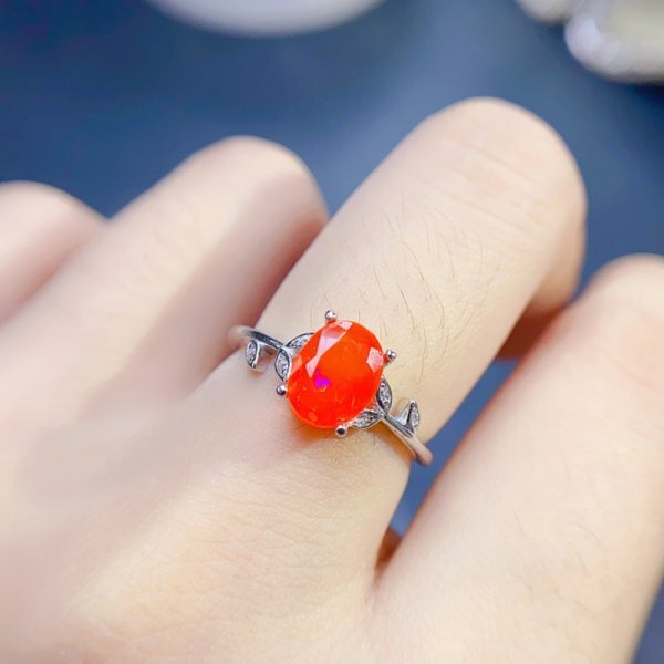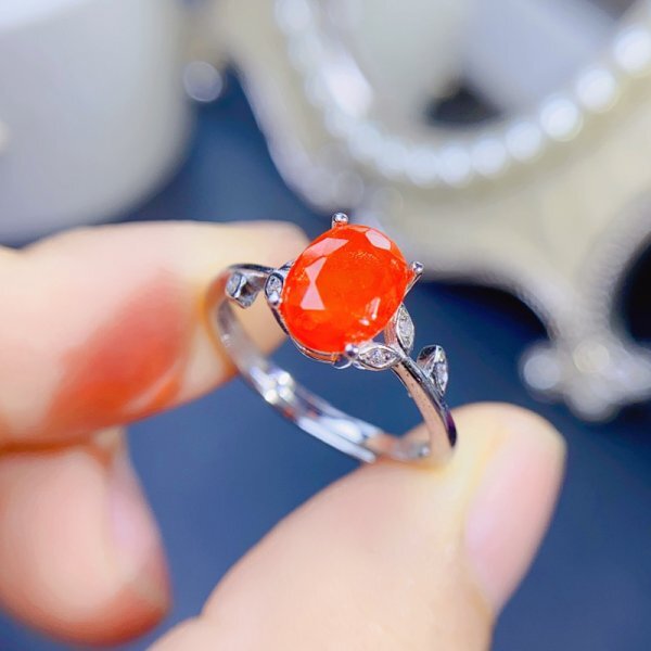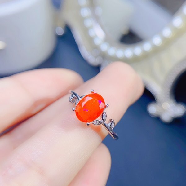 天然火のオパールリング、女性用、925シルバー、18k金メッキ、パーティーギフト