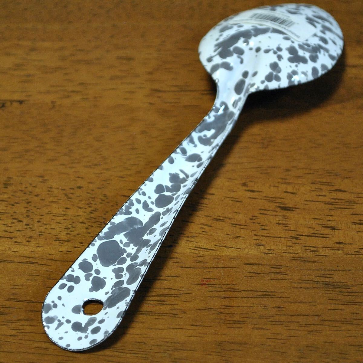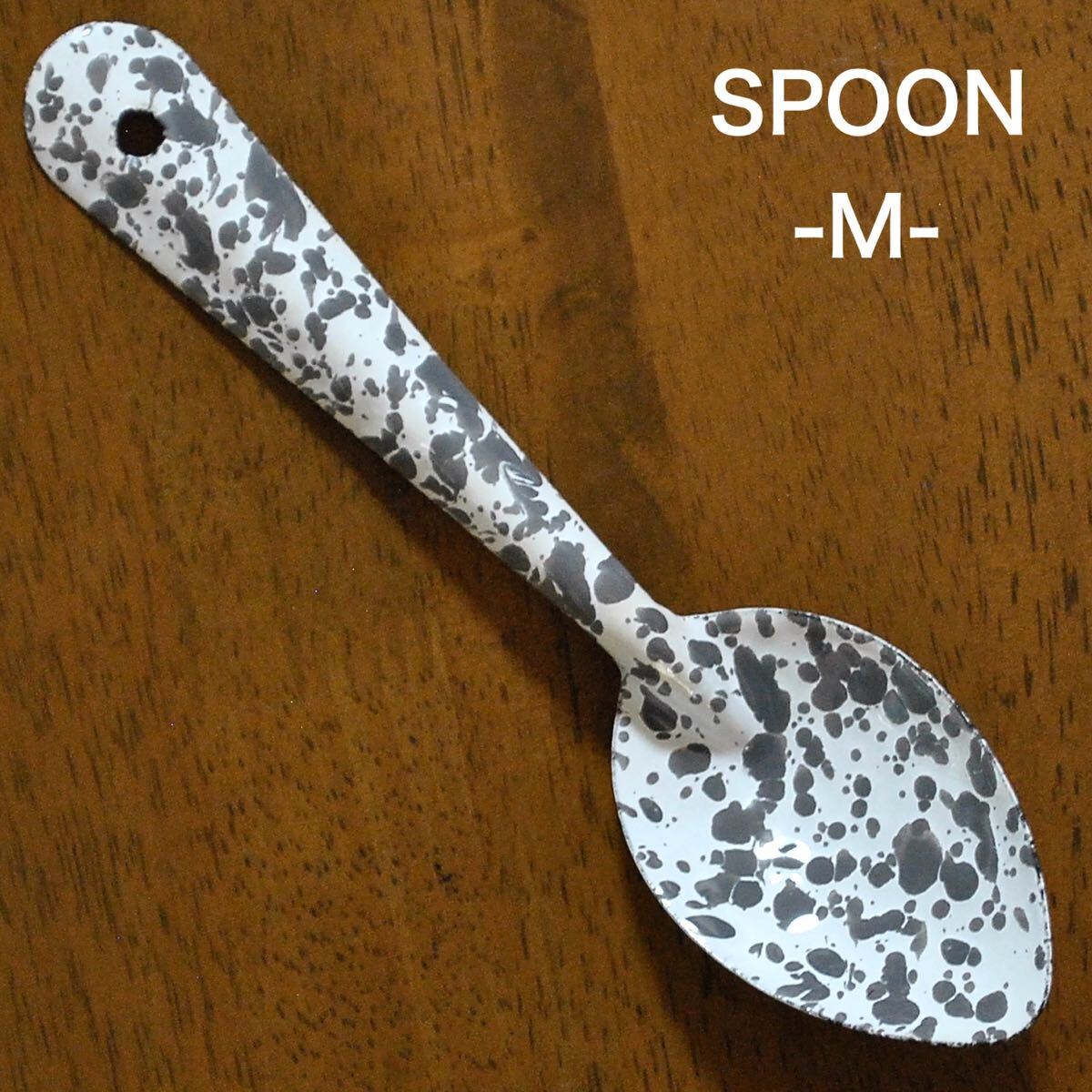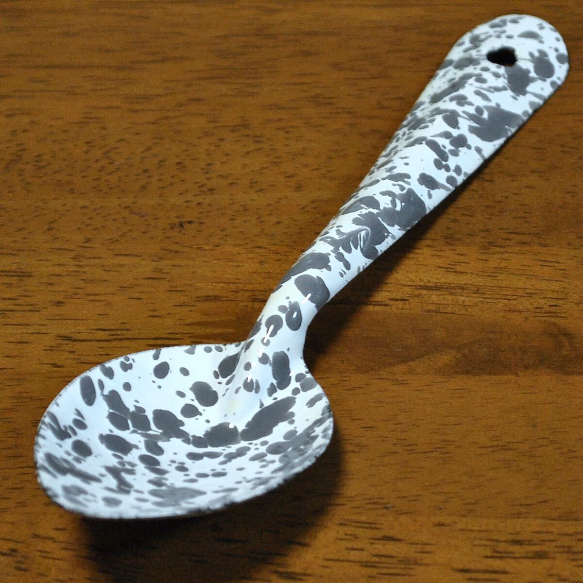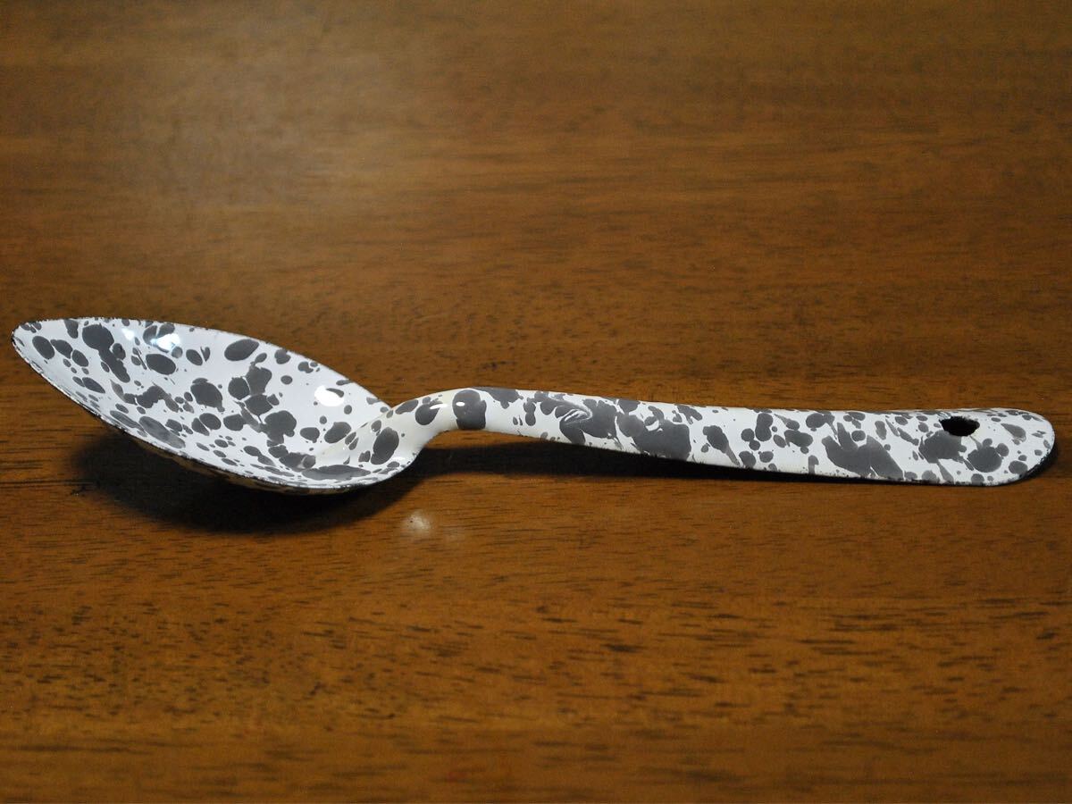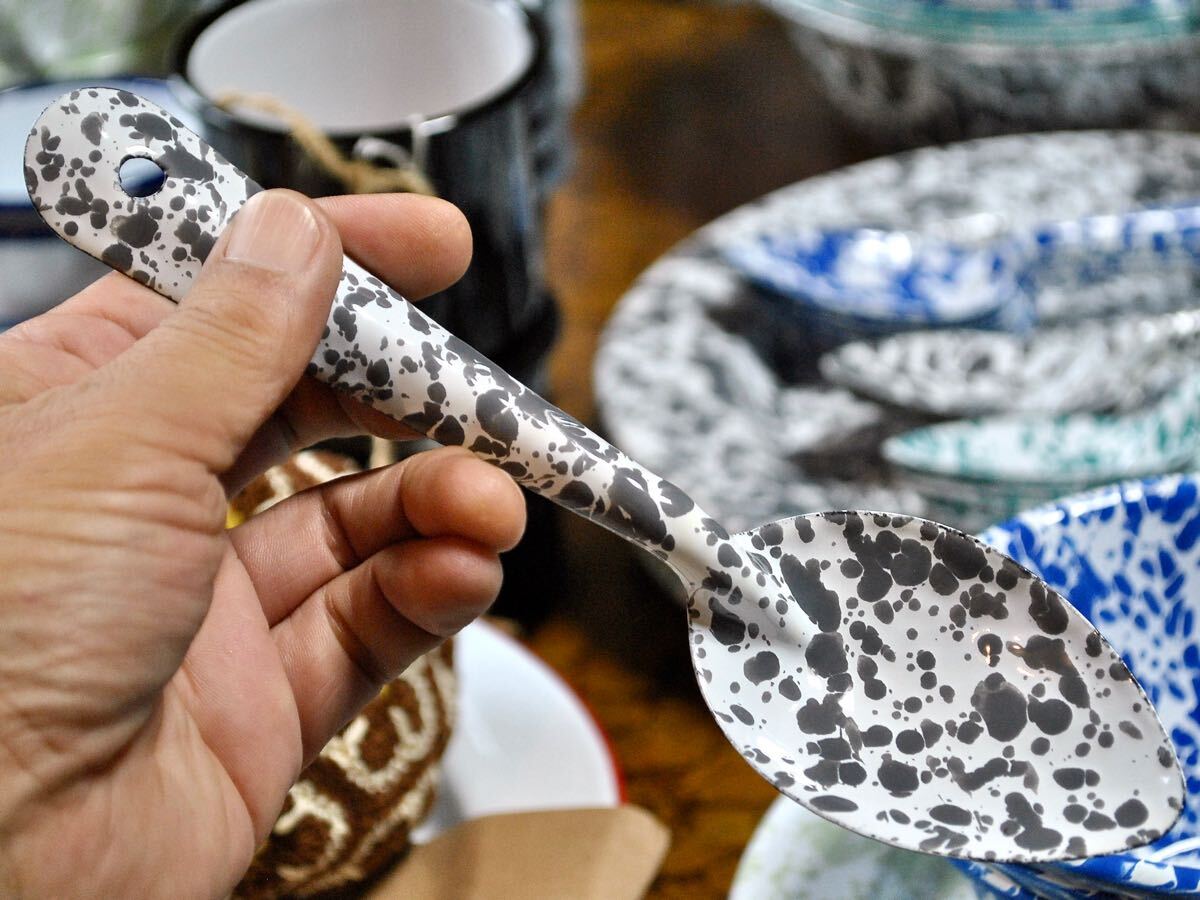 スプラッターパターンと呼ばれる独特の飛沫模様が魅力のホーロースプーン【Mサイズ】です。