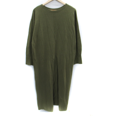 ローリーズファーム LOWRYS FARM ニットワンピース マキシ丈 ロング丈 長袖 スリット F 緑 グリーン /SM31 レディース