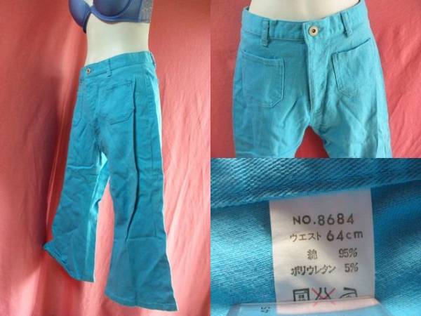 USED ストレッチ サブリナジーンズ サイズW64 ターコイズ