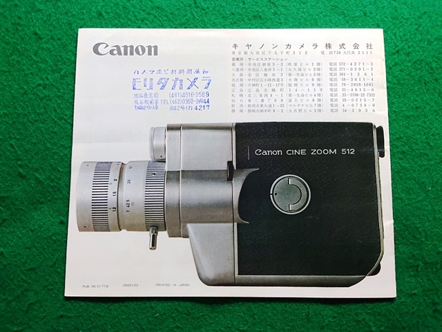 CANON キヤノン シネズーム512 カタログ■1960年代 昭和 当時物 キヤノン