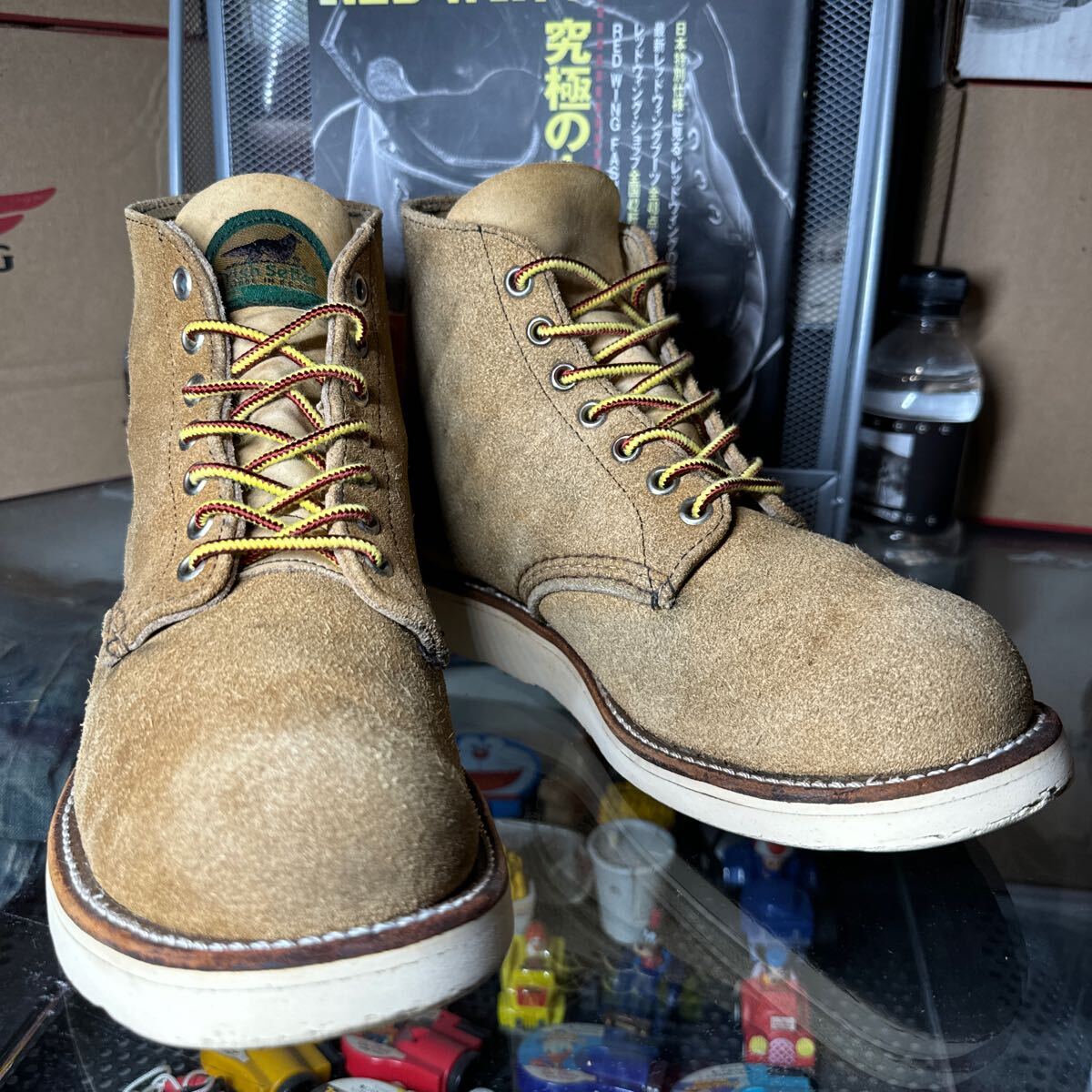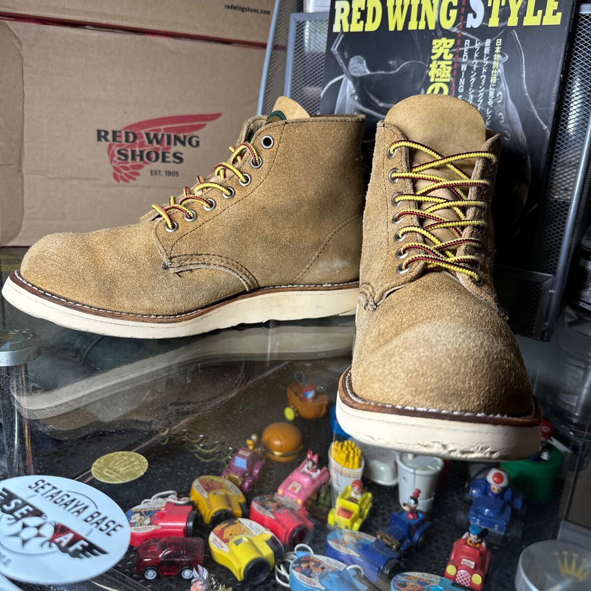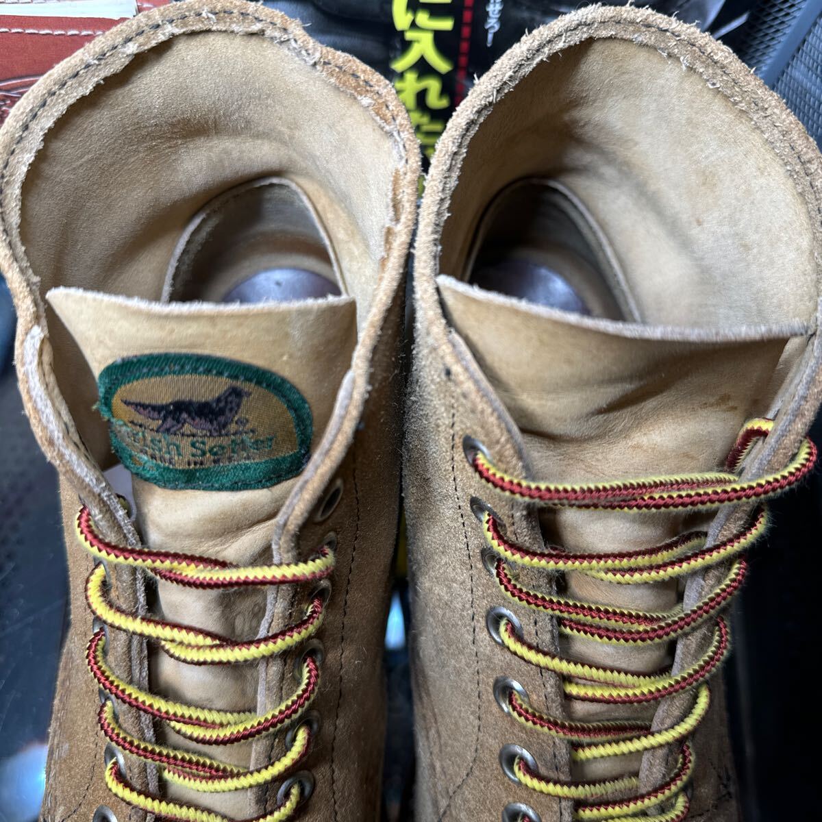 当商品は非常に人気のある90'sに生産された、ラフアウトというスエード素材が特徴のレッドウィング です。しかも右足タンの表に半円犬タグが刺繍された超生産量の少ないモデルになります!!