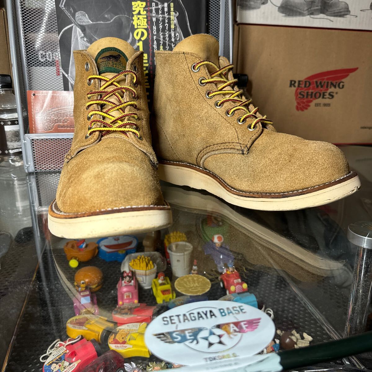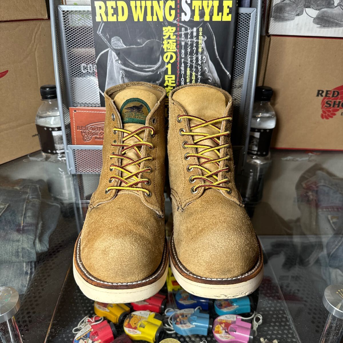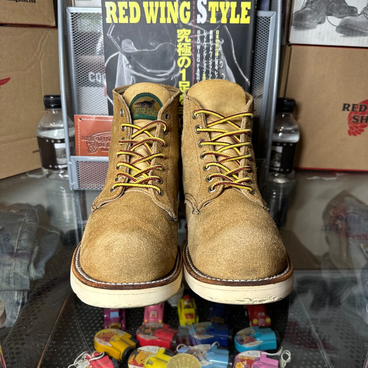 当商品は非常に人気のある90'sに生産された、ラフアウトというスエード素材が特徴のレッドウィング です。しかも右足タンの表に半円犬タグが刺繍された超生産量の少ないモデルになります!!