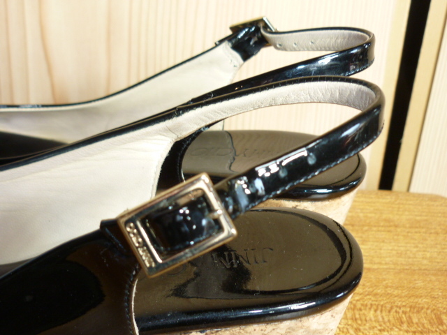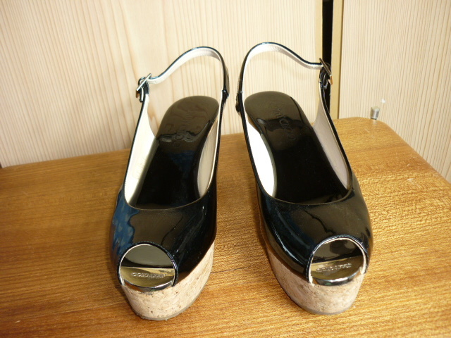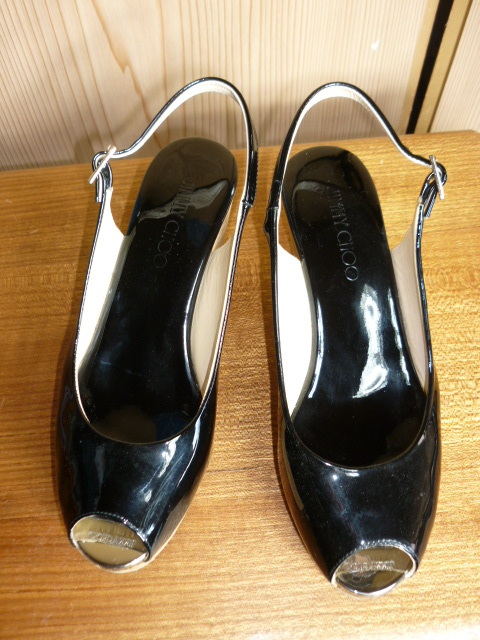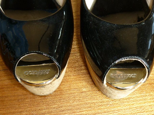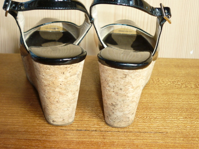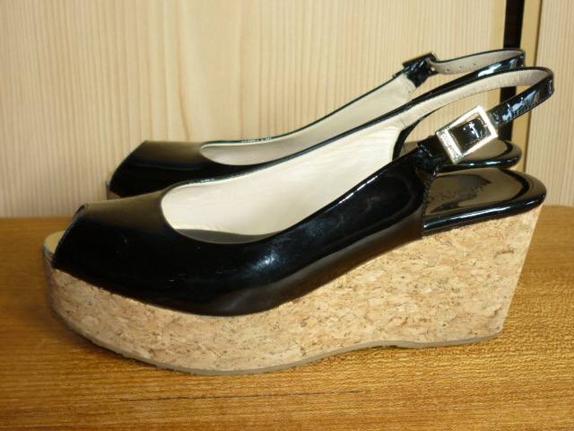 k86★美品★ JIMMY CHOO (ジミーチュウ)・サイズ38(24cm)【エナメル・厚底サンダル (踵約8㎝】黒 ★商品詳細は記載文を・・