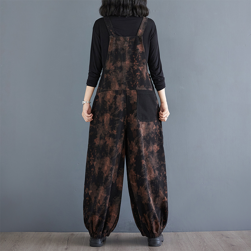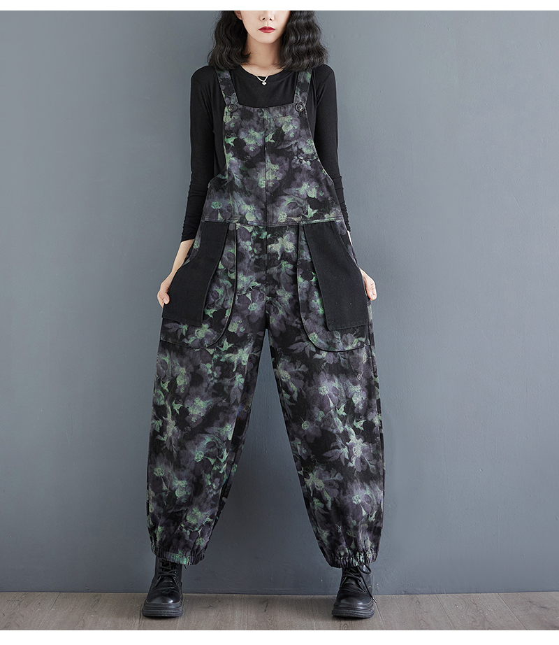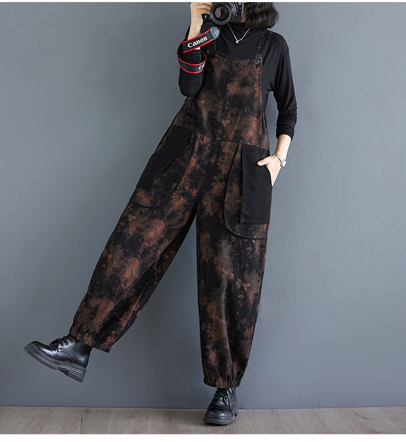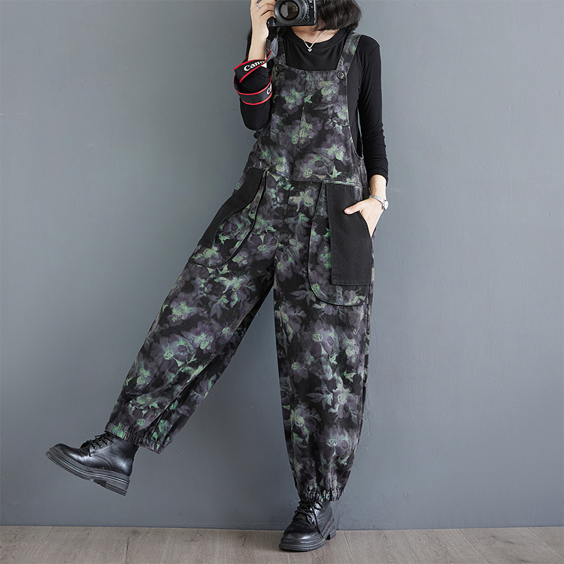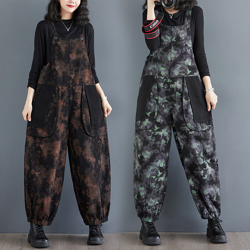 「同梱1万円送料無料」秋冬カジュアル*花柄オシャレ*ゆったり*つなぎ*デニムサルエルサロペットM~XXL選べる コーヒー
