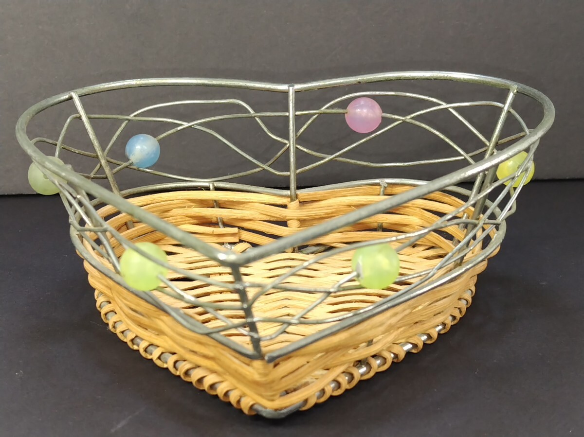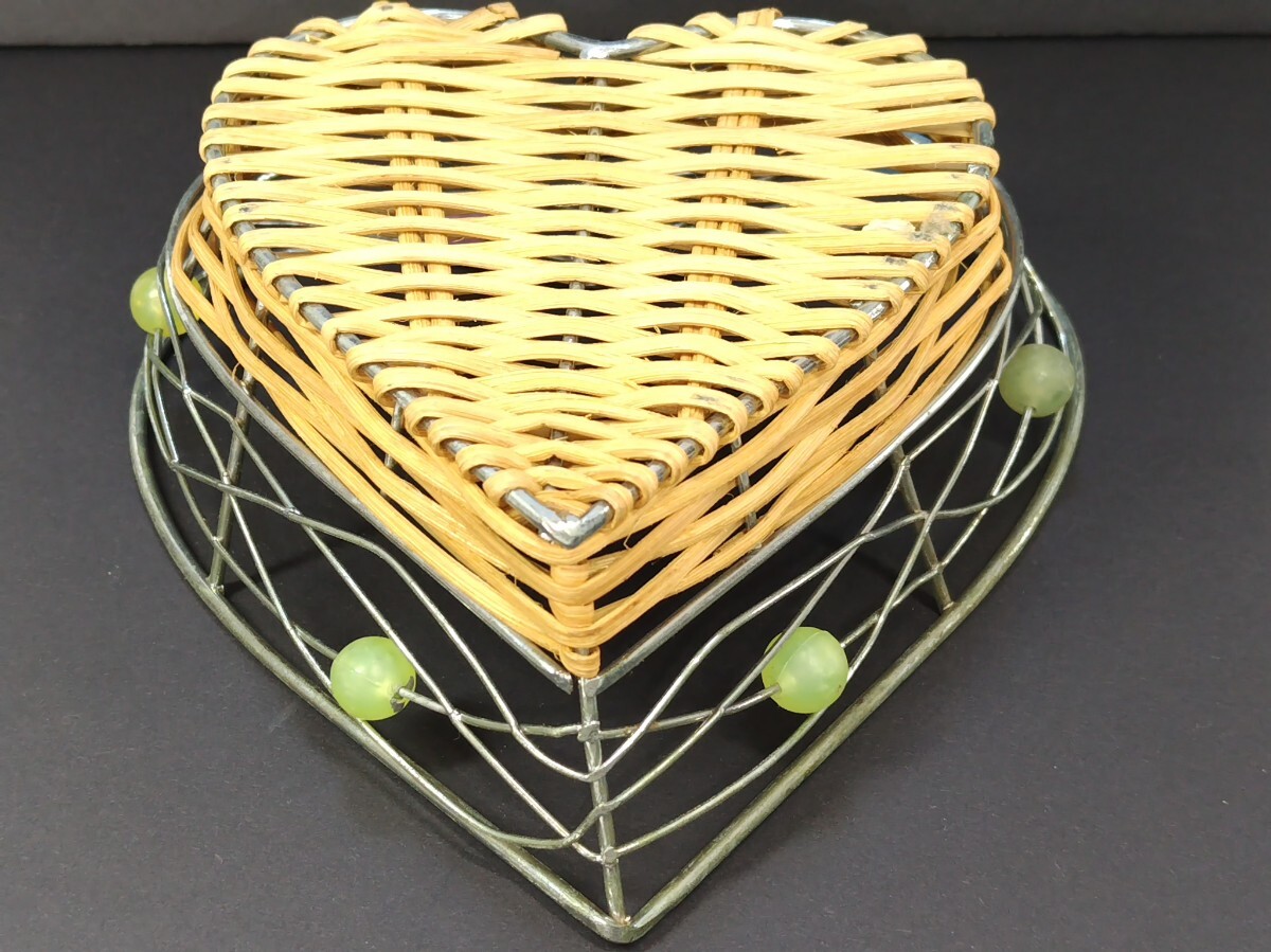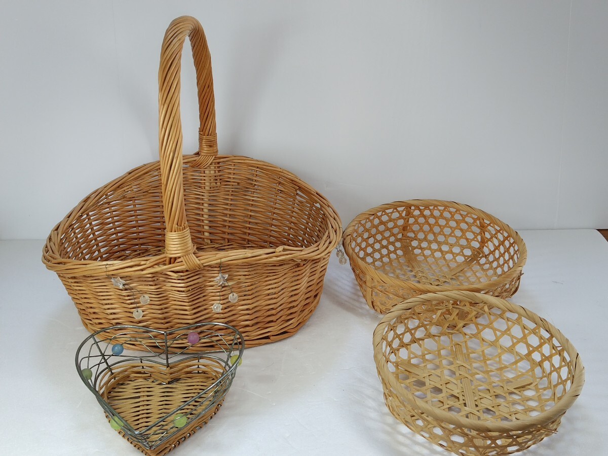 ハート型カゴの金属部分は、少々サビていますが、他の商品は美品です。竹製のカゴ2点は未使用品です。