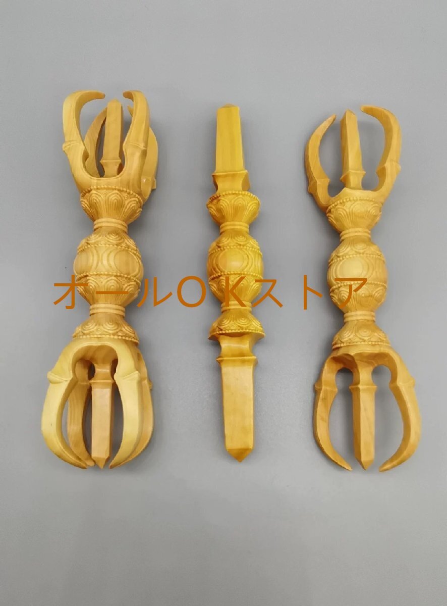 一鈷杵 三鈷杵 五鈷杵 真言 密教法具 寺院仏具 木彫 15CM
