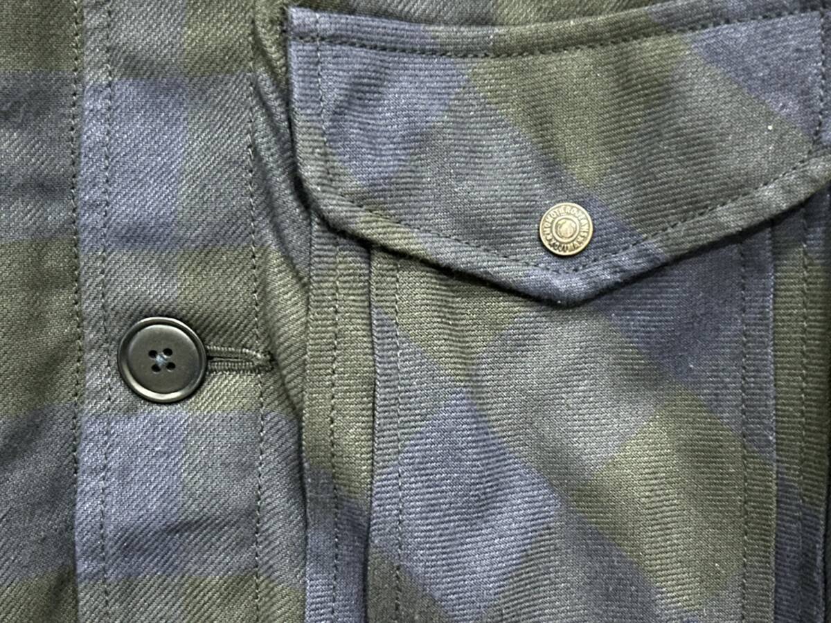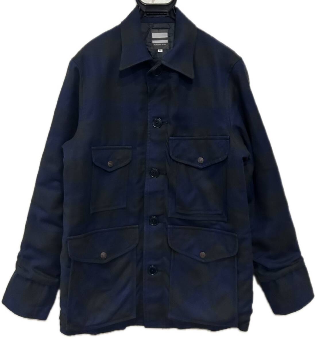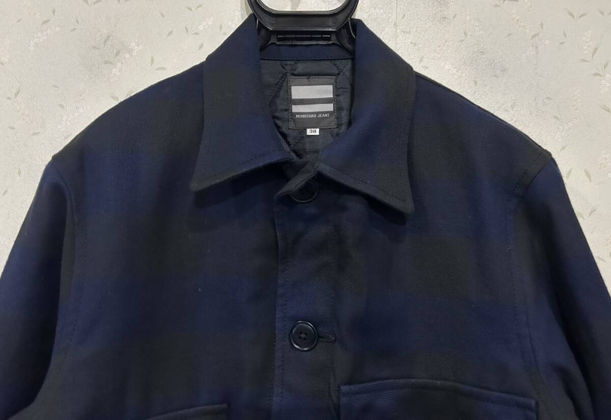 *桃太郎ジーンズ MOMOTARO JEANS ブロックチェック 裏キルティング カバーオール ワークジャケット 中綿 アウター 38       BJBD.AB