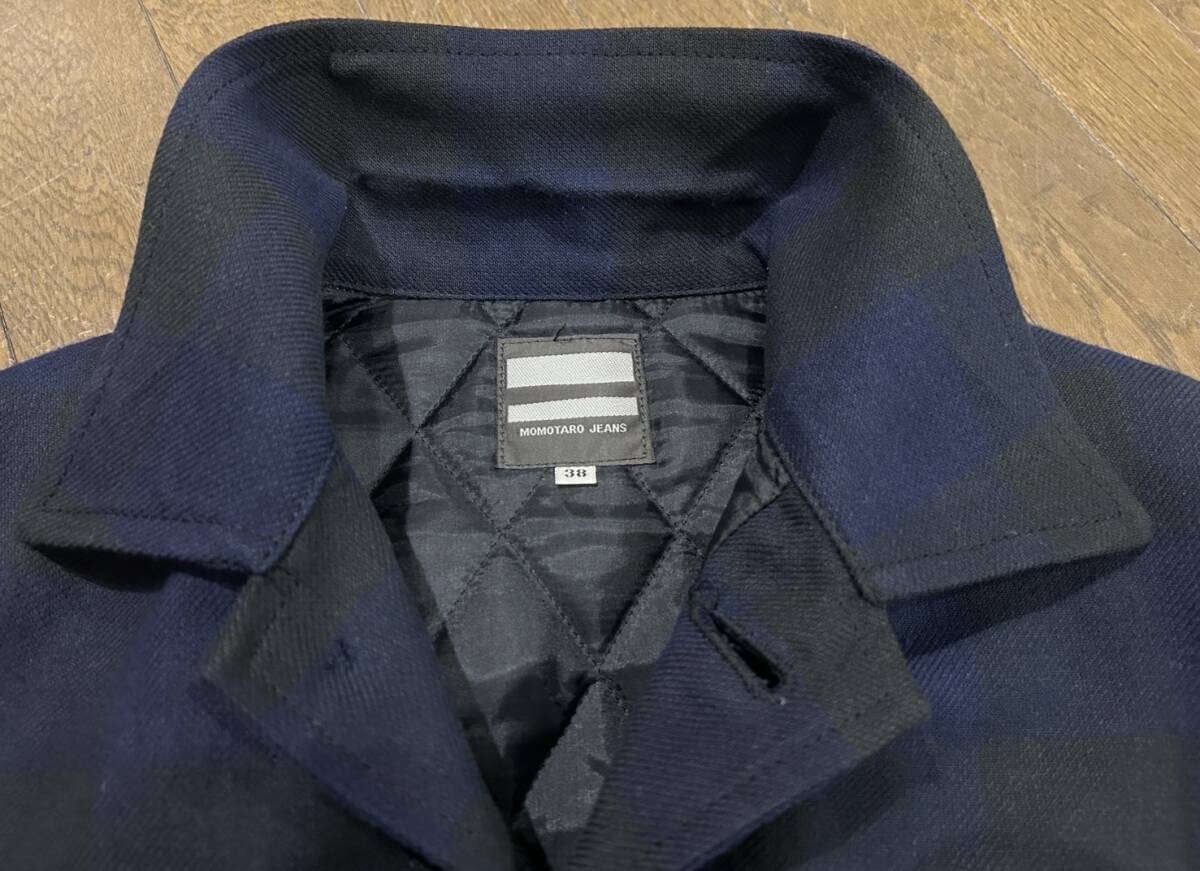 *桃太郎ジーンズ MOMOTARO JEANS ブロックチェック 裏キルティング カバーオール ワークジャケット 中綿 アウター 38       BJBD.AB
