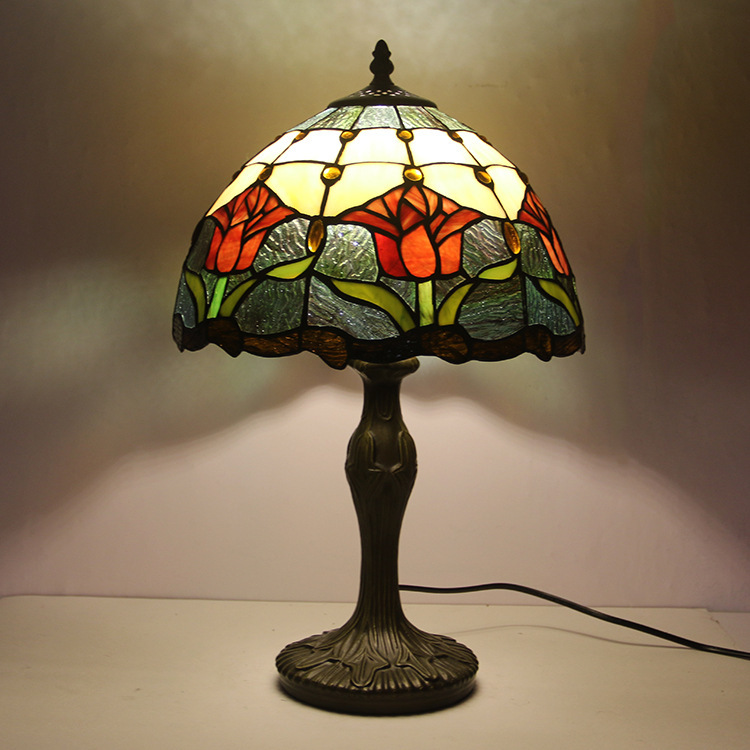 新品ステンドグラス アンティーク ステンドランプ花柄 レトロな雰囲気がおしゃれ 照明 リビング デスクライト