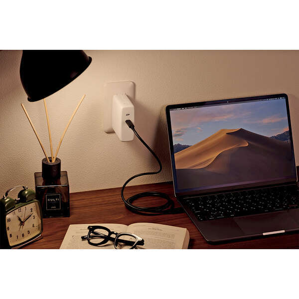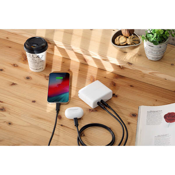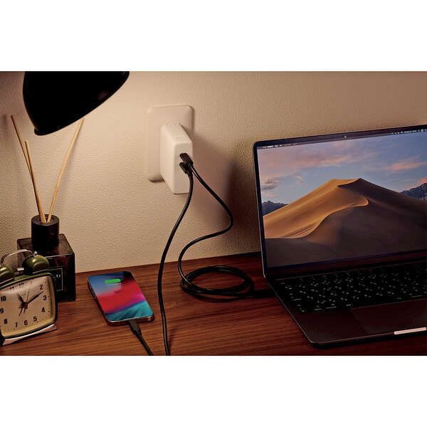 | ●USB Type-C×2ポート搭載で、スマートフォン・ワイヤレスイヤホンなど 複数のデバイスを同時充電できて便利 | |