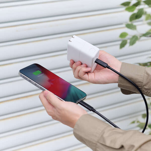 | ●本製品をコンセントに挿した状態でパソコンやスマートフォンを接続することで、 AC充電器としても使えます | |