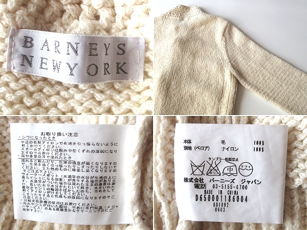 高級 BARNEYS NEW YORK バーニーズニューヨーク ウール ニットカーディガン ニットダッフルコート ジャケット FREE エクリュ 国内正規品