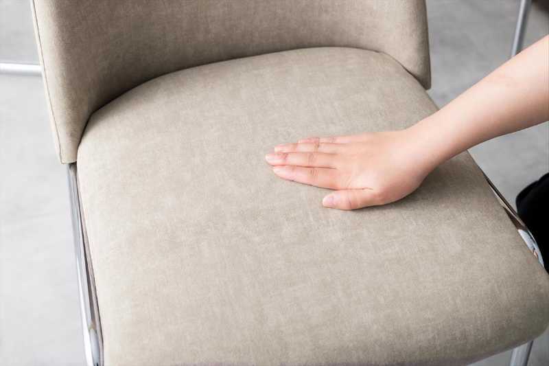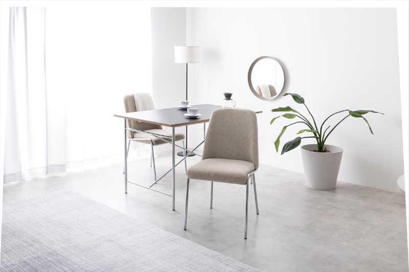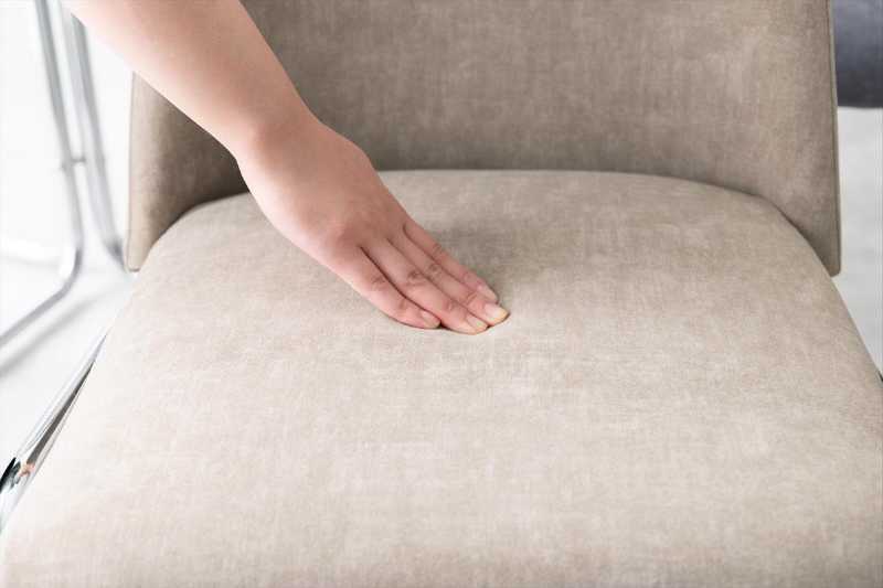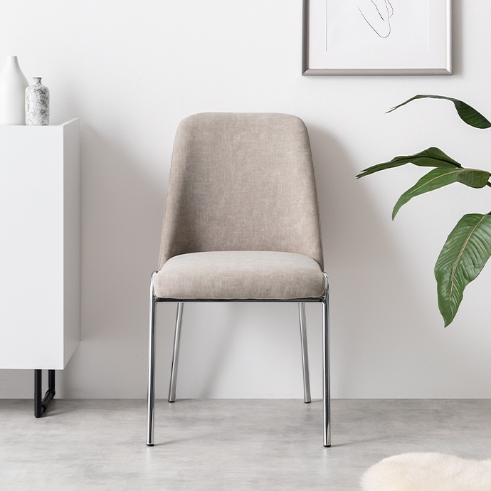 しっとりとした上質なファブリック生地×シルバー脚が洗練された雰囲気を与えるダイニングチェア。