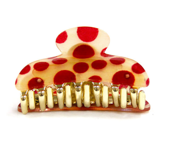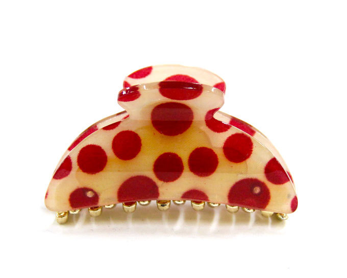 髪にクリップするだけで簡単にヘアアレンジが実現できるドット(水玉)モチーフをデザインに落とし込んだシンプルなヘアクリップ。ワンタッチで手軽にまとめ髪をつくれるので、忙しくて時間のない朝にもおすすめです。ハーフアップなどヘアアレンジにも最適。【サイズ】(最長部分)幅:約3.5cm 長さ:約6.5.cm(平置採寸)【素材】プラスチック【カラー】ベージュ×レッド【商品説明】ワンタッチ式のクリップタイプ、髪を1つに束ねたいときに便利です。※掲載画像は出来る限り実物に近づける様に務めておりますが、お使いのブラウザ環境によりカラーの出方に誤差が出る場合がございます。※こちらの商品は店頭販売も同時に行っておりますので、掲載中でも実店舗に在庫切れの場合ございます。何卒ご了承願います。