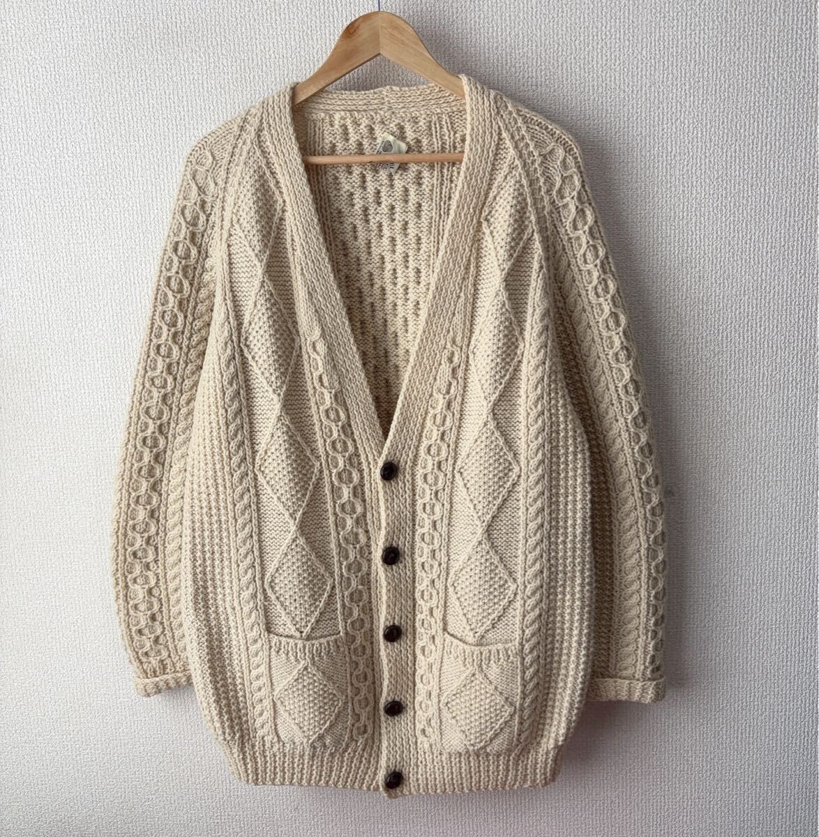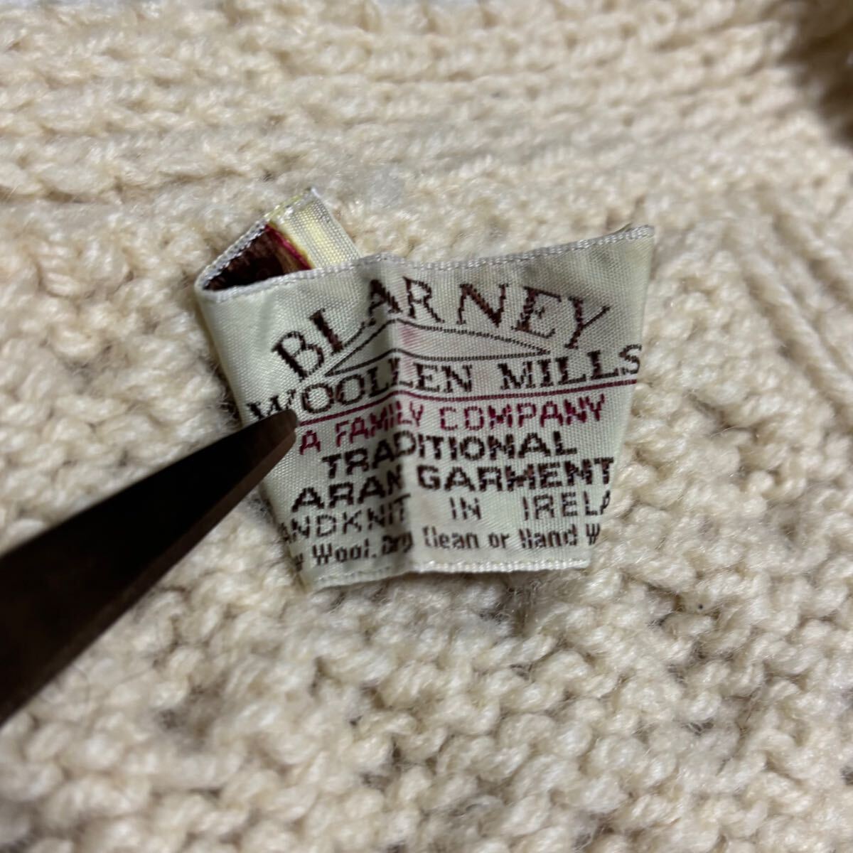 アイルランド製 BLARNEY WOOLLEN MILLS アラン ニット カーディガン ウール フィッシャーマン ケーブル編み