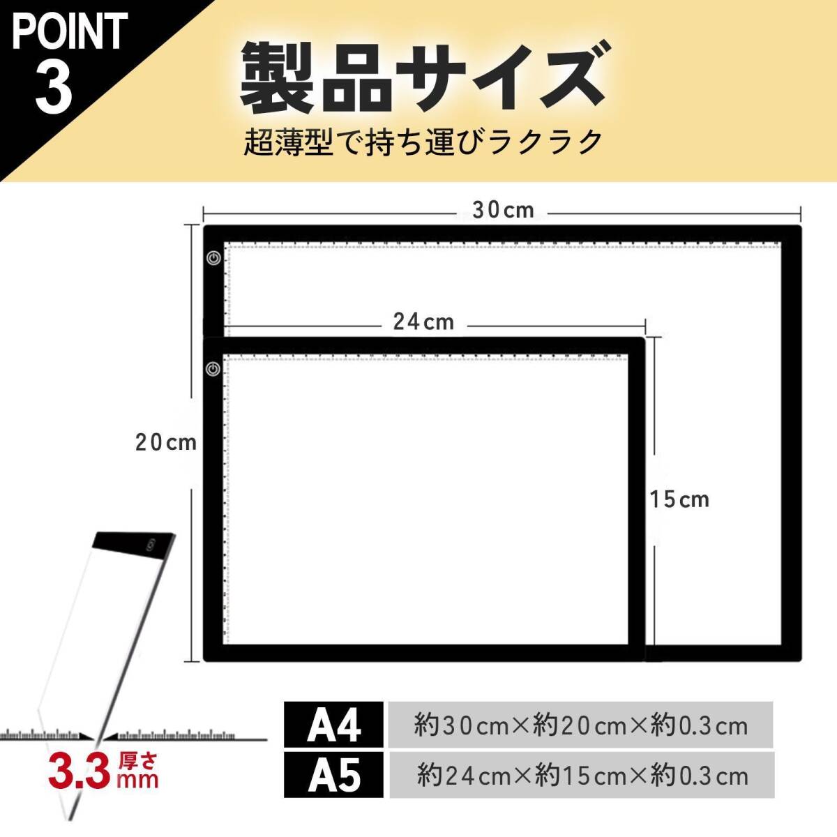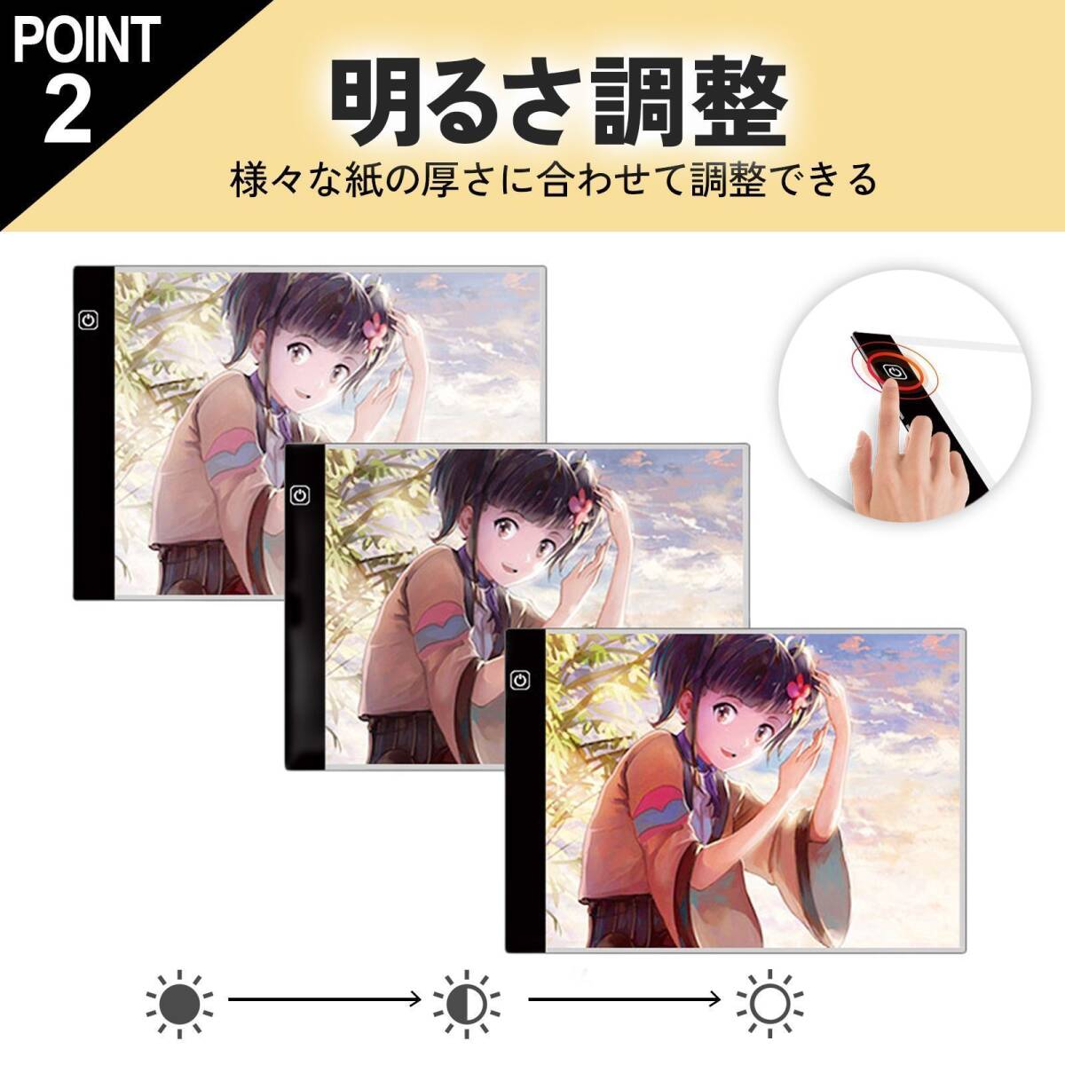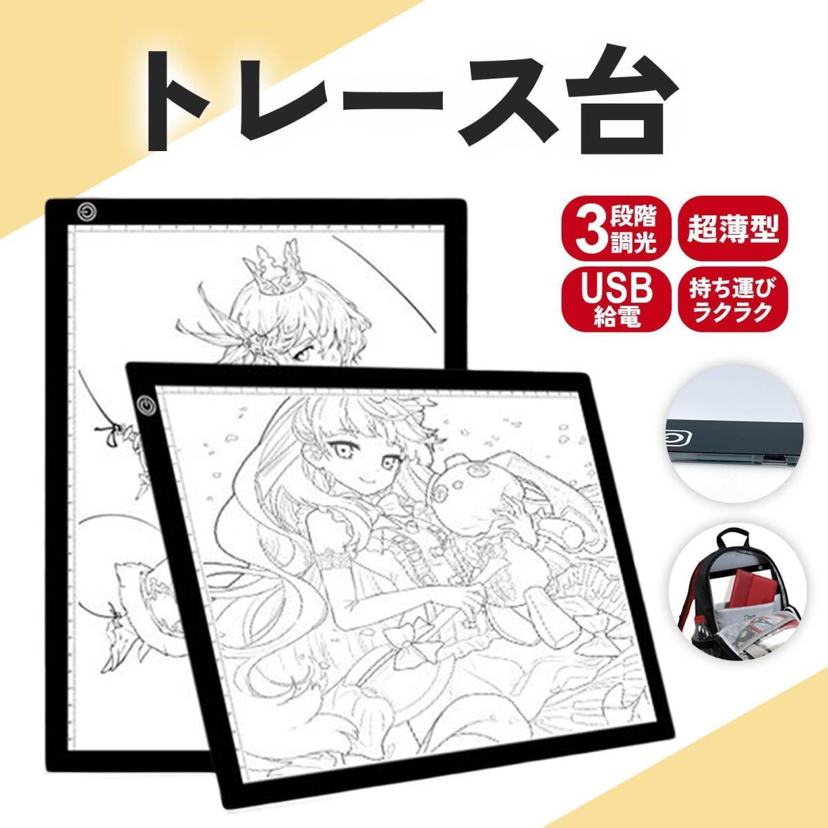 トレース台 LED ライト USB 電源 3.3mm 3段階 ノート 照明 トレーサー アニメ デザイン イラスト マンガ アート 台 A4