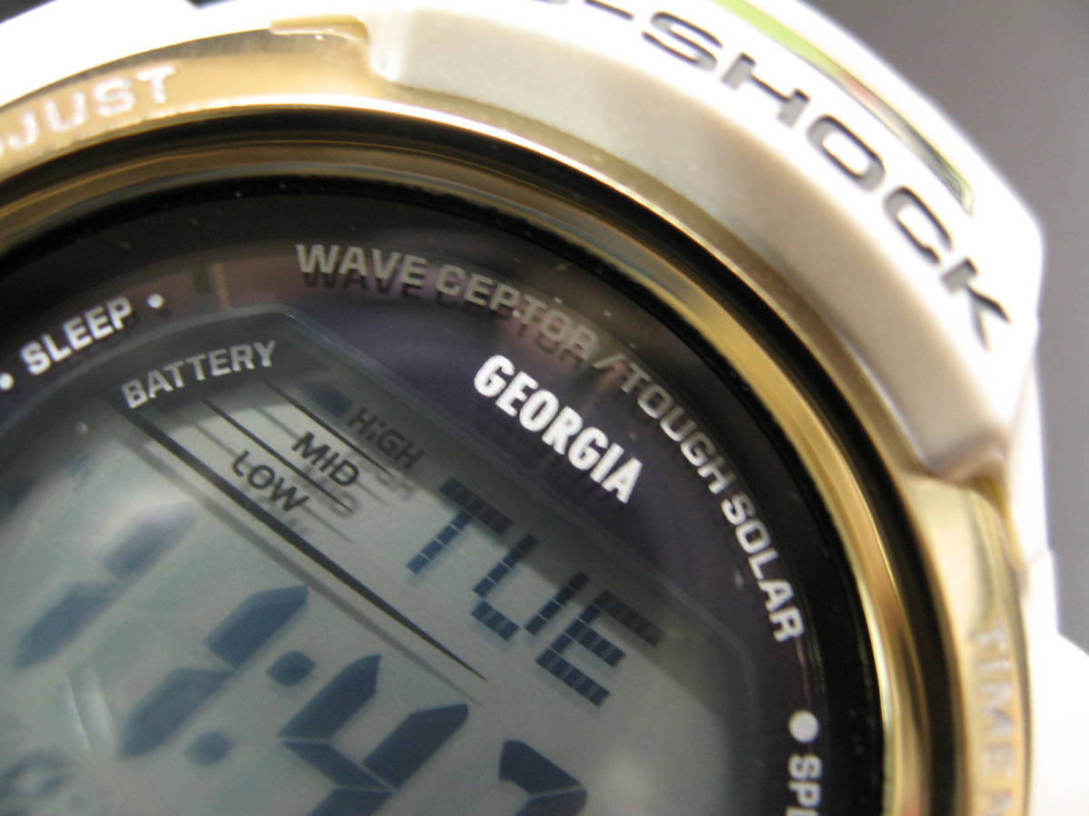★★★★★バックライトには、赤色で、『ジョージアのロゴマークのコーヒーカップ絵柄・QUALITY COFFEE』が浮かび、文字盤には、『GEORGIA』ロゴマーク入り&裏蓋にも『GEORGIA』ロゴ刻印入り&『メタリック・ホワイト・カラー&ゴールドベゼルカラー』の超限定仕様!!!