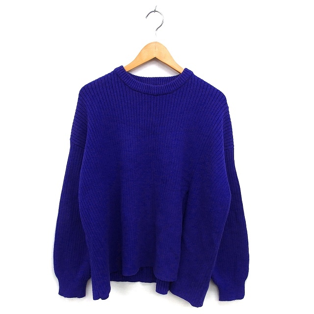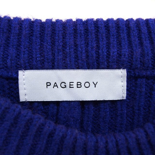 ページボーイ PAGE BOY ニット セーター リブ ワイド スリット クルーネック ゆったり 長袖 F 紺 ネイビー /NT18 レディース