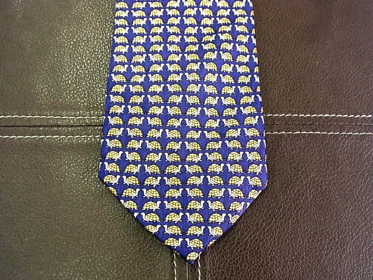 ♪C5756「良品」【シルク100%・亀 カメ 柄】ネクタイ♪