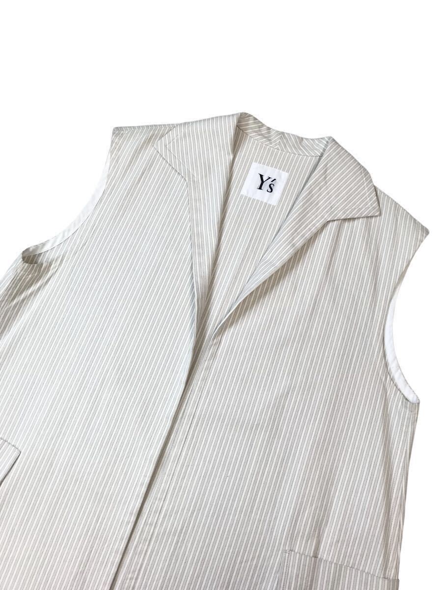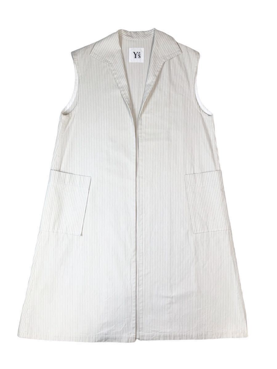 (D) Y's ワイズ ヨウジヤマモト コットン ストライプ ワンピース ノースリーブ (ma)