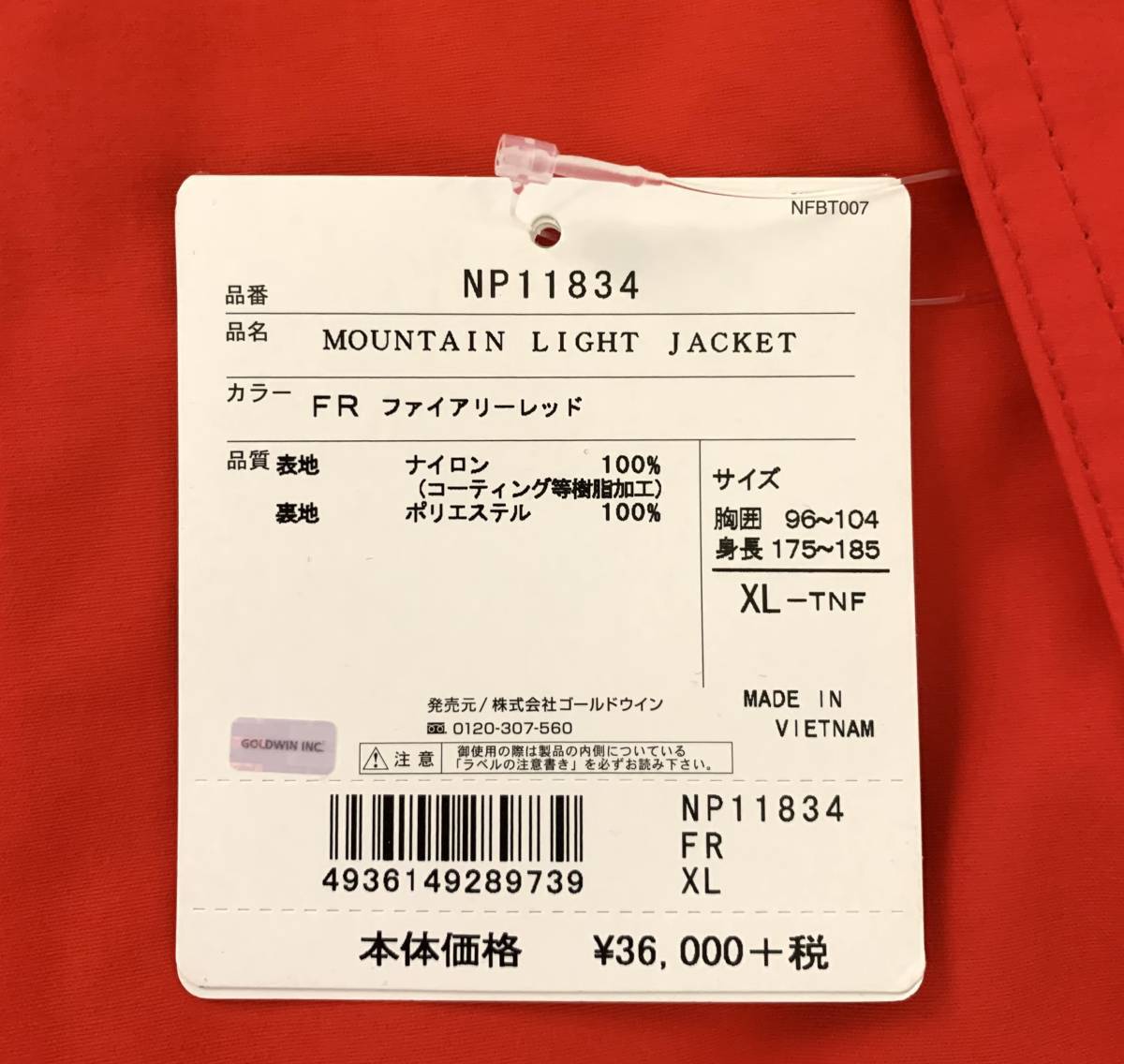 【新品】THE NORTH FACE MOUNTAIN LIGHT JACKET(XL)赤 ノースフェイス マウンテン ライト ジャケット ゴアテックス GTX