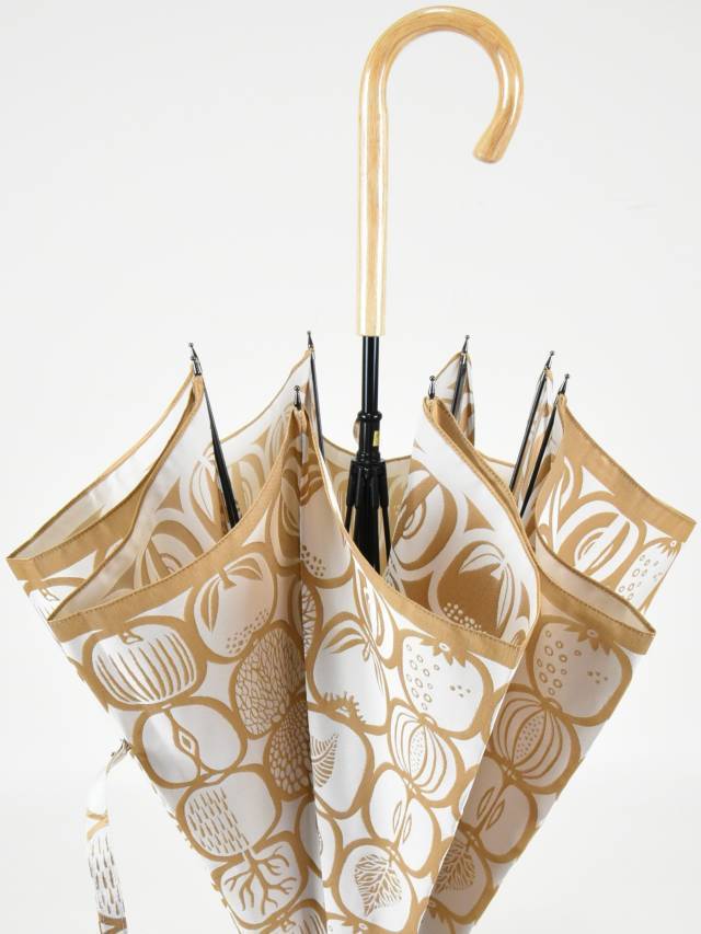 大手傘メーカーや皇室御用達で有名な前原光榮商店をはじめ、多くの傘メーカーに傘生地を納入している甲州織の老舗 槙田商店が、北欧デザインの巨匠“スティグ・リンドベリ”のデザインをジャガード織で再現した高級雨傘です。 槙田商店のジャガードは、その土地ならではの澄みきった富士の湧水で染め上げた極めて発色の良いクオリティーの高い糸を用いて織り上げたもので、光の角度により、はっとするような煌めきを見せたり深みのある落ち着きを見せたりと様々な表情を楽しむことが出来ます。 生地にはUVカット加工が施されているため、晴雨兼用傘としてお使いいただける優れものです。 槙田商店は傘生地の生産だけでなく傘の製造も手掛けており、有名どころの傘メーカーにも納入実績があり品質はお墨付き。 メンテナンスを怠らなければ末永くご愛用頂け、修理も可能です。 ご自身でのご利用はもちろんプレゼントにもお勧めな逸品です。 |