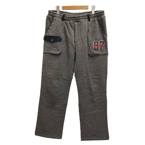 パジェロ PAGELO スウェットパンツ ストレート ウエストゴム ワッペン 無地 裏起毛 ロング丈 L グレー 黒 ブラック メンズ