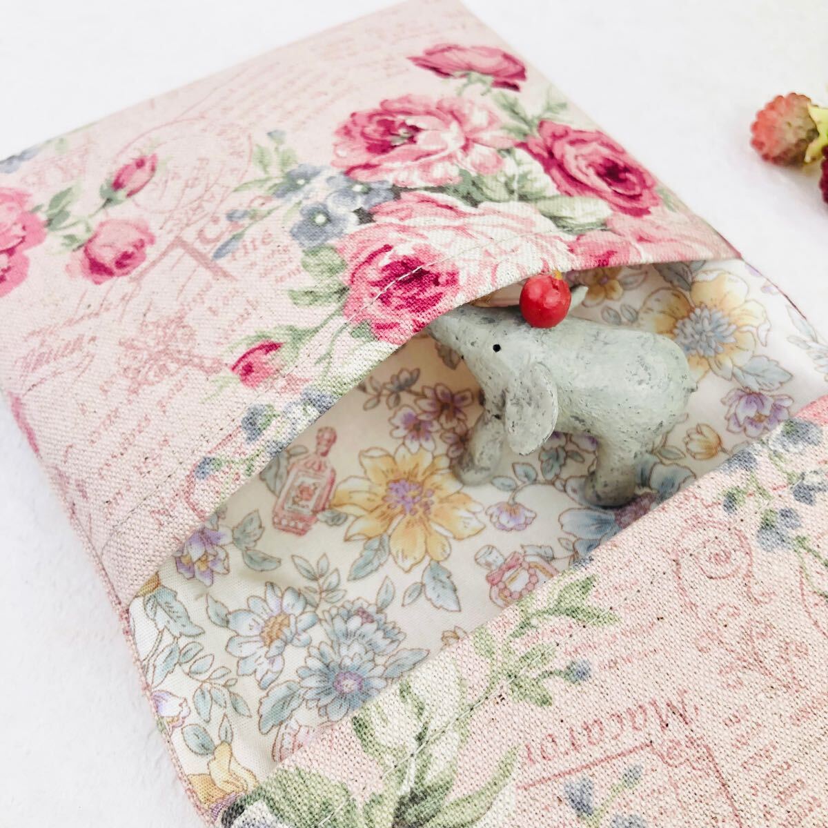 ローズ×英字 ピンク サニタリーポーチ ハンドメイド ナプキンケース ナプキンポーチ カイロポーチに