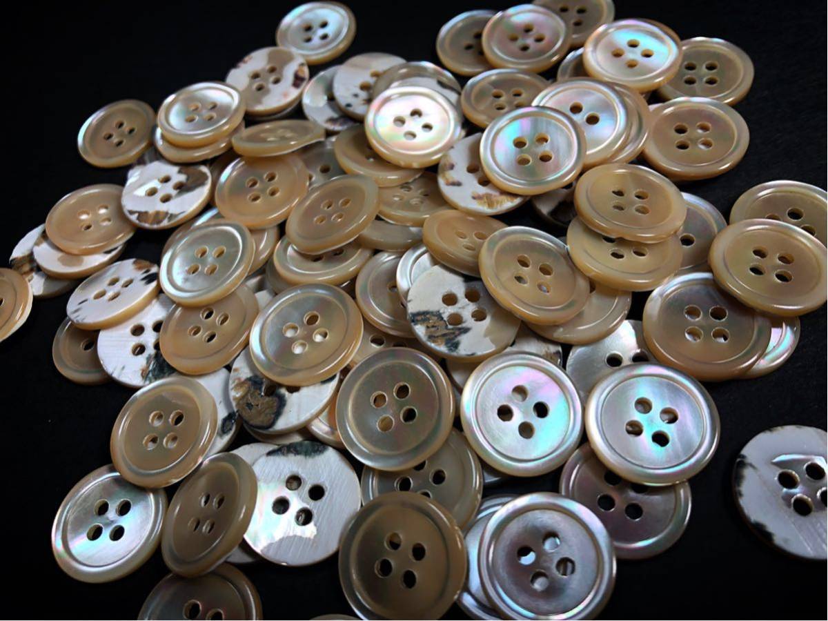 表は一面若干生成りがかった白色で、光により乱反射しますが、蝶貝のようにそれほどキラキラしておりません。