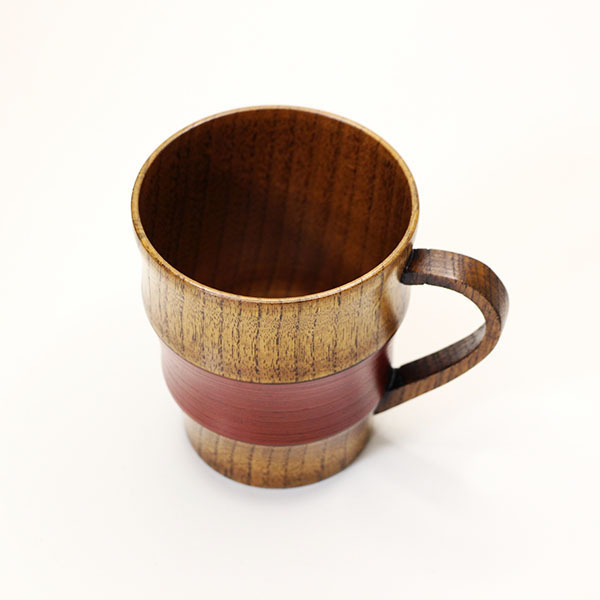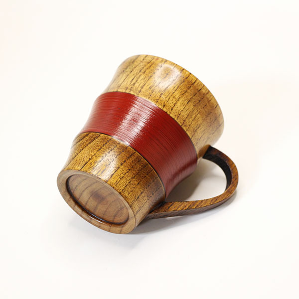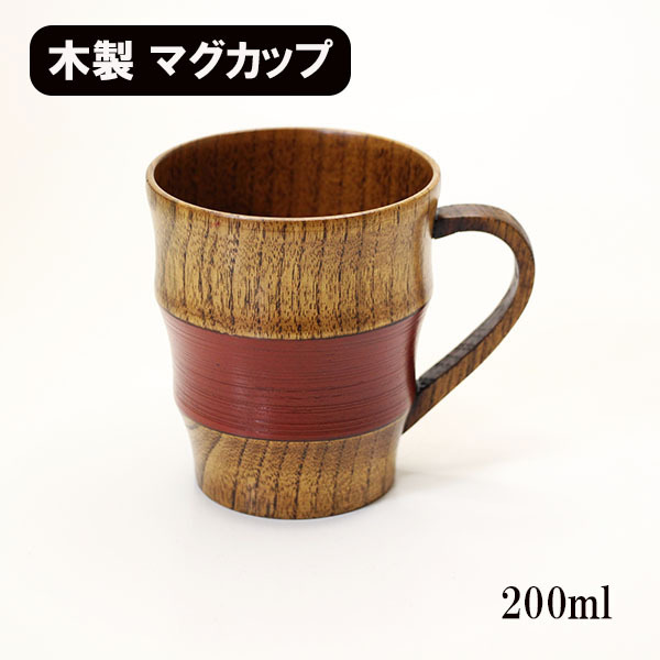 木製 マグカップ コップ カップ 漆塗り 段付 さび朱 200ml 天然木 持ち手 取っ手 スープカップ 湯呑み ウッドカップ 軽い 軽量