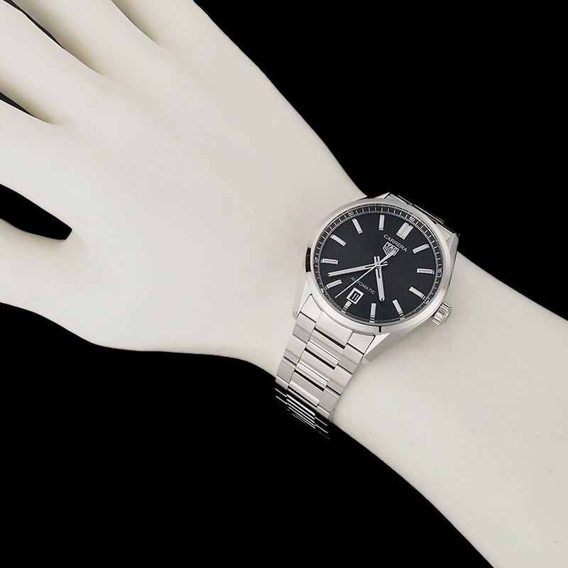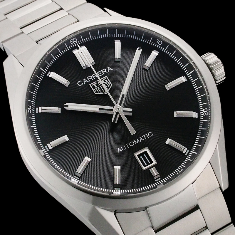 備考:クールなブラックカラーのギョーシェフェイスが魅力的な、カレラシリーズが持つスポーティーな雰囲気とシンプルなデザインを併せ持った「カレラ キャリバー5」。仕上済で洗練された都会的なデザインながら、どんなに困難な状況にも耐えられる性能を有したスタイリッシュなアイテムです。