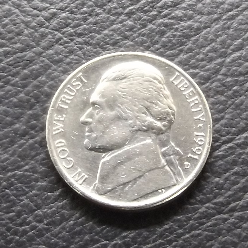 アメリカ 5セント 1991年 D刻印 送料無料 (19725) USA  お金 貨幣 硬貨  ドル コイン USA アンティーク