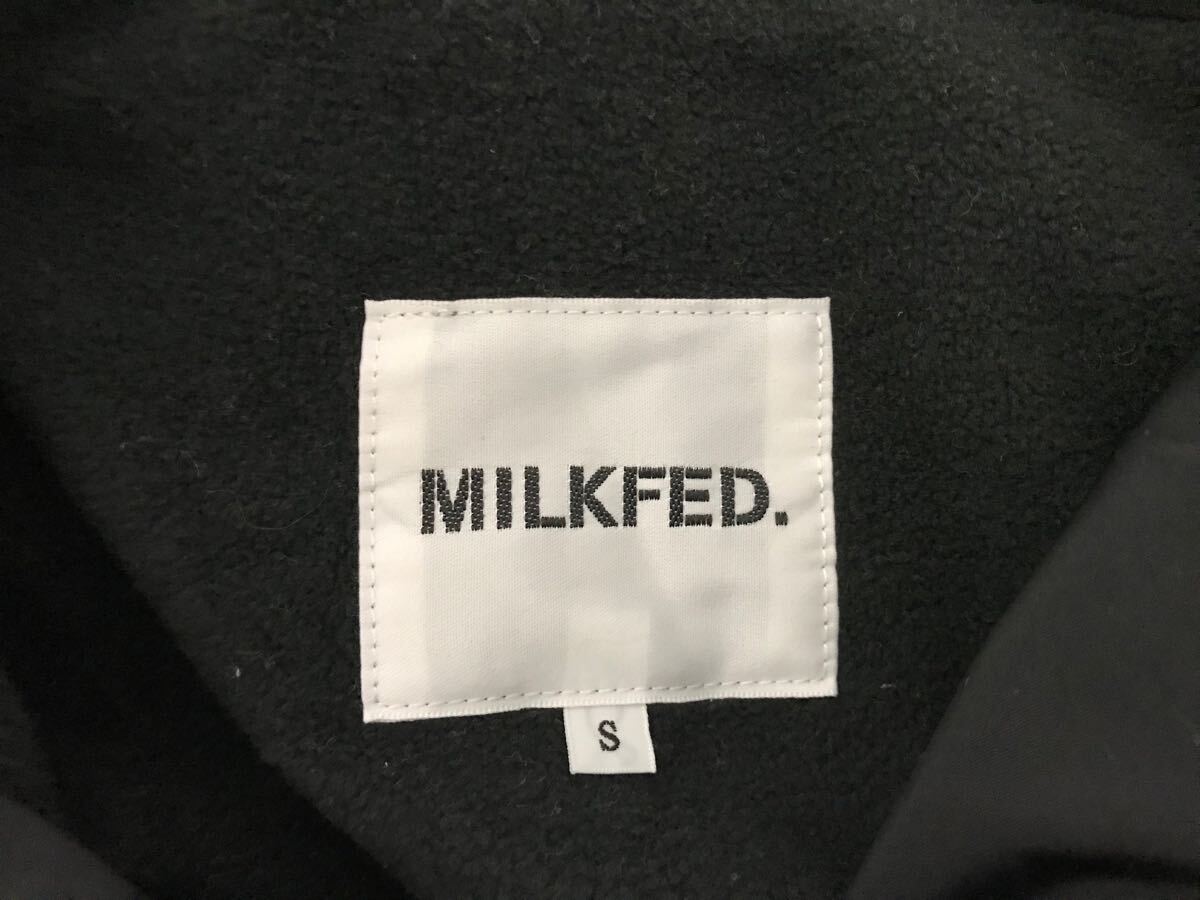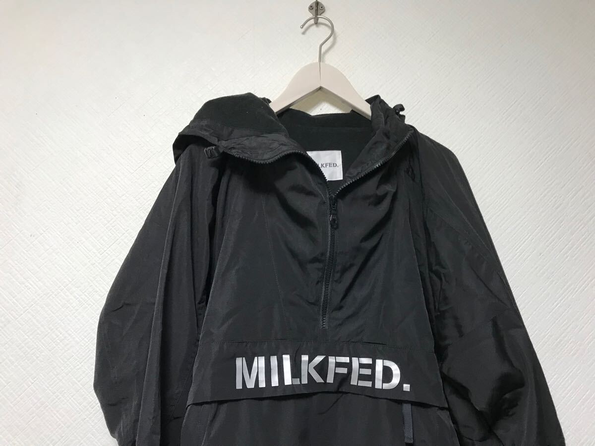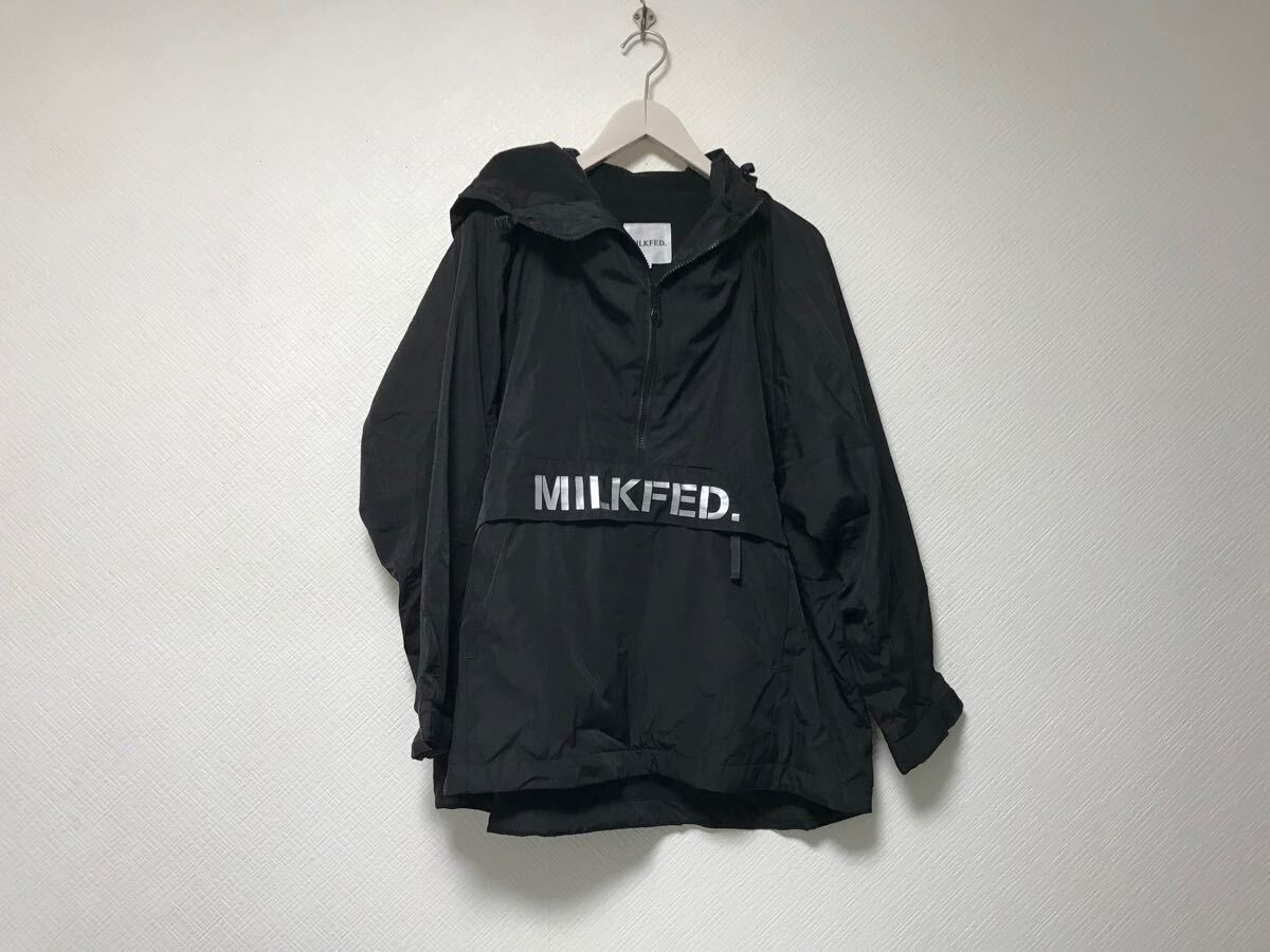 商品名:本物ミルクフェドMILKFED.ナイロンハーフジップミリタリープルオーバーロゴプリントジャケットパーカー長袖サーフアメカジミリタリースケーターストリートビジネススーツパーティードレスゴルフメンズ黒ブラックS