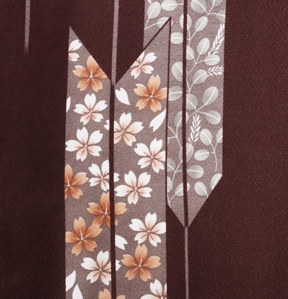 小紋 袷 赤茶紫地 矢絣・桜・南天・撫子 上品な着物です。 (写真では上手く色が出ない場合があります。ご了承下さい) |
